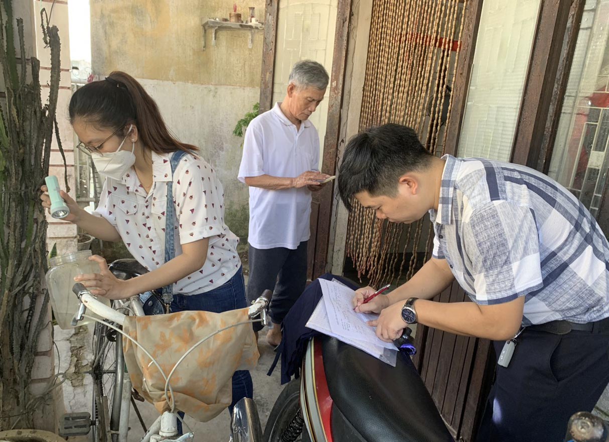 Kiểm tra sổ sách theo dõi dịch và điều tra chỉ số bọ gậy tại phường Vỹ Dạ.