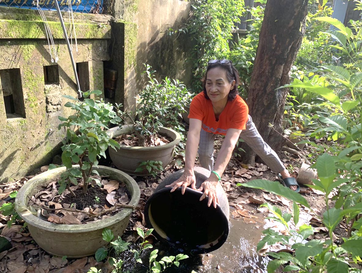 Kiểm tra bọ gậy ở các loại hình chứa nước chậu cây, chậu cảnh, ngăn chứa nước máy quạt, bể chứa nước ngoài trời