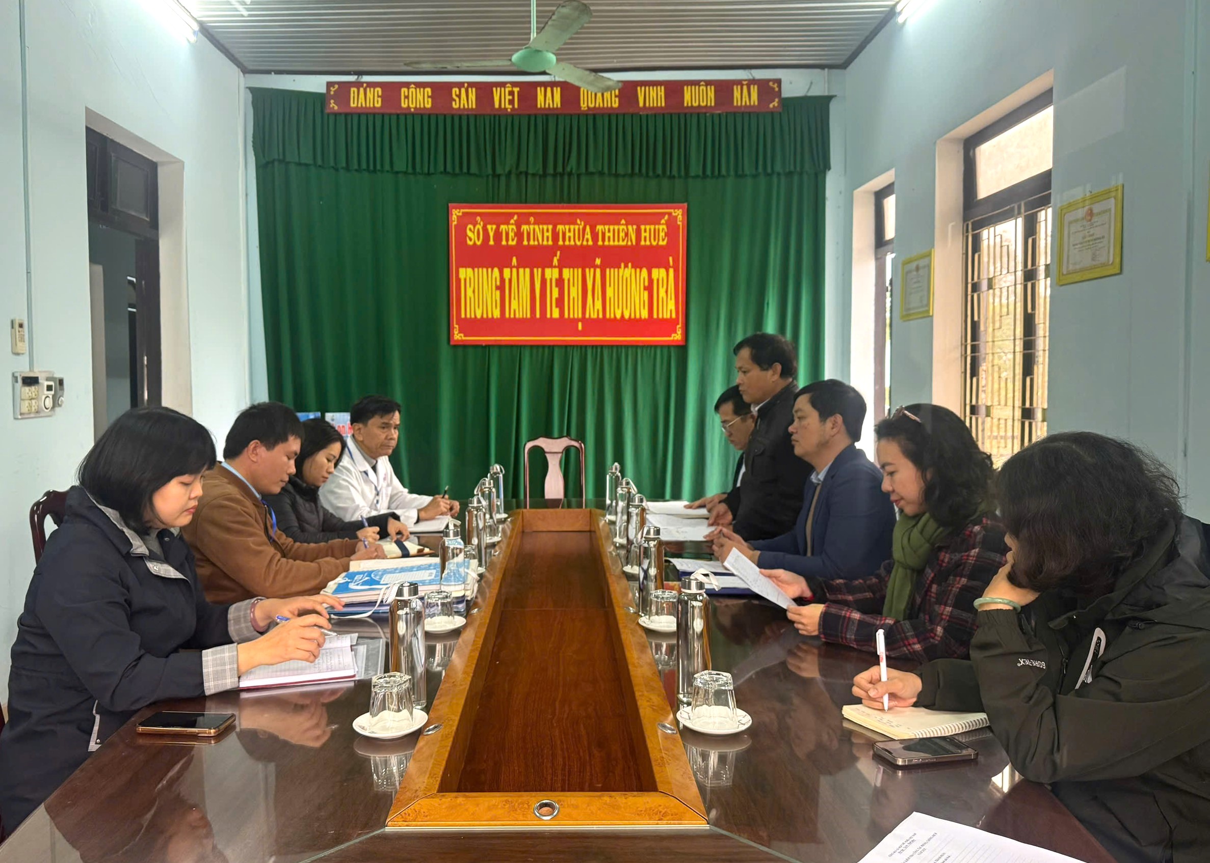 Đoàn công tác CDC Huế làm việc với TTYT thị xã Hương Thủy.