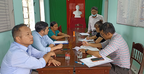 Cán bộ CDC tỉnh, TTYT Quảng Điền làm việc với CBYT Thị trấn Sịa (Quảng Điền)