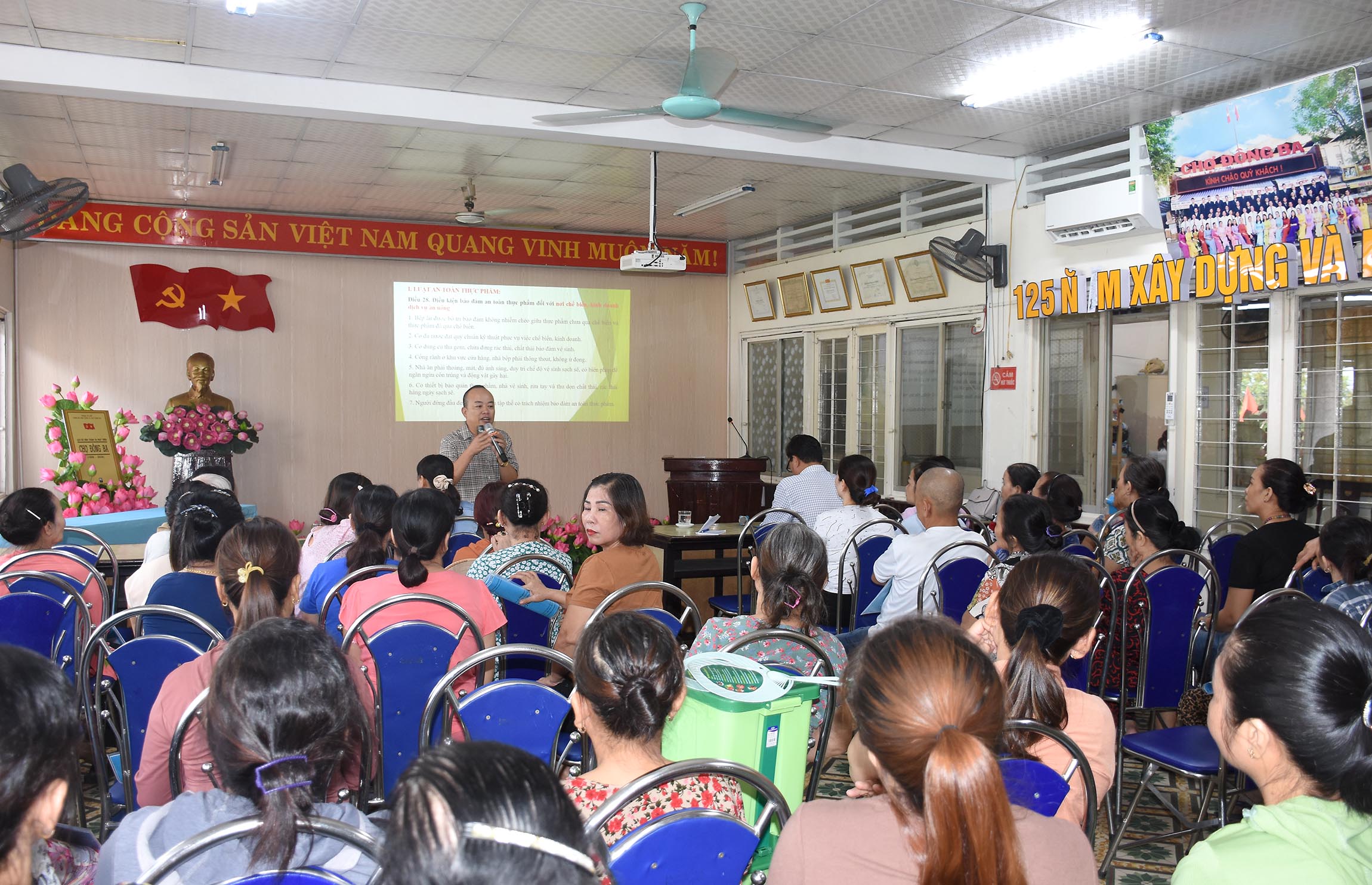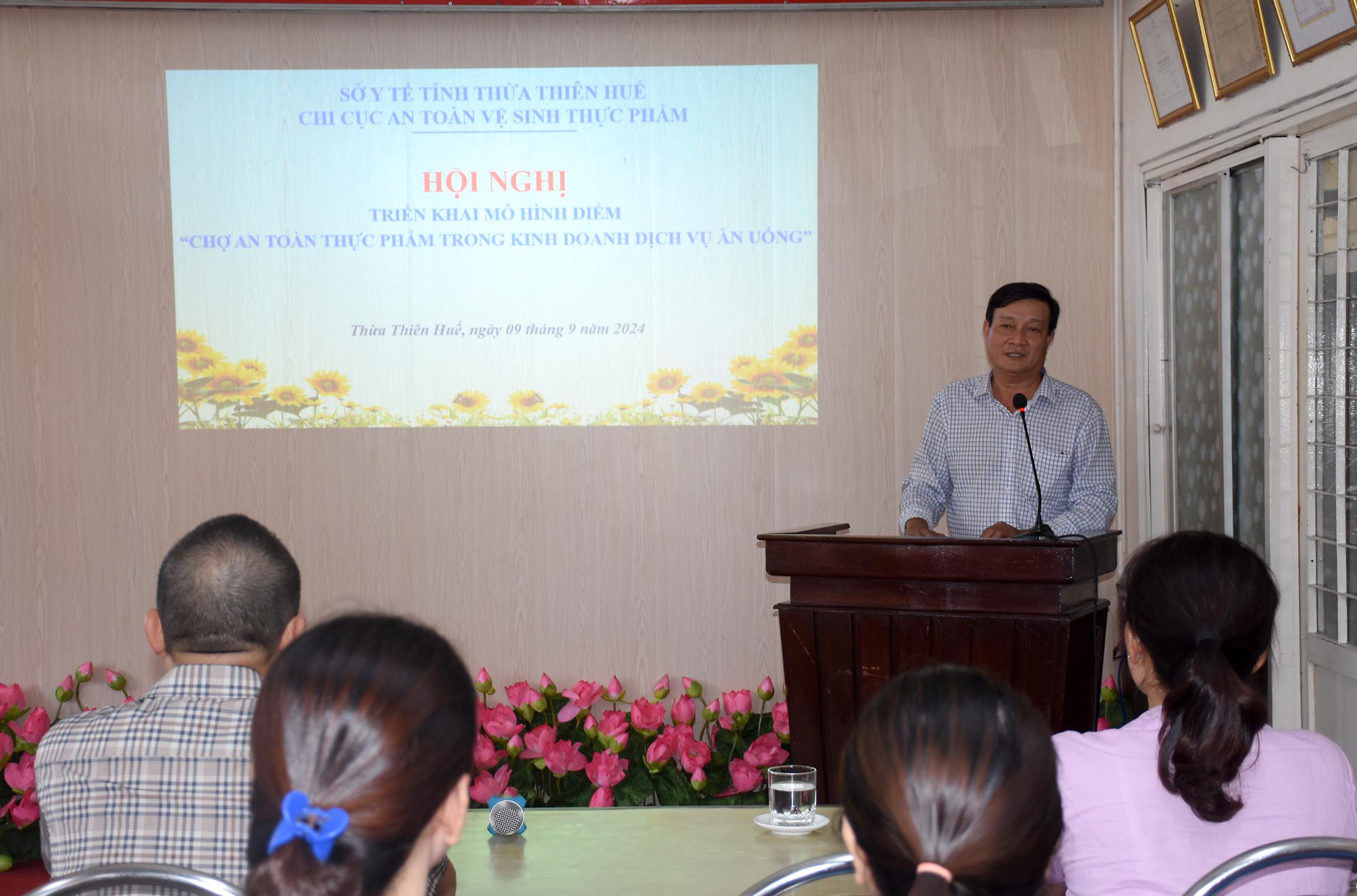 Ngày 9/9/2024 tại chợ Đông Ba Huế, Chi cục ATVSTP tổ chức Hội nghị triển khai mô hình điểm "Chợ An toàn thực phẩm trong kinh doanh dịch vụ ăn uống". Ths Dương Xuân Hồng - Phó Chi cục trưởng cùng các bộ phận chuyên môn của Chi cục ATVSTP, đại diện TTYT thành phố Huế; UBND, Trạm Y tế phường Đông Ba và Ban Quản lý cùng hơn 60 hộ kinh doanh dịch vụ ăn uống tại chợ Đông Ba tham gia mô hình điểm cùng tham dự hội nghị.
