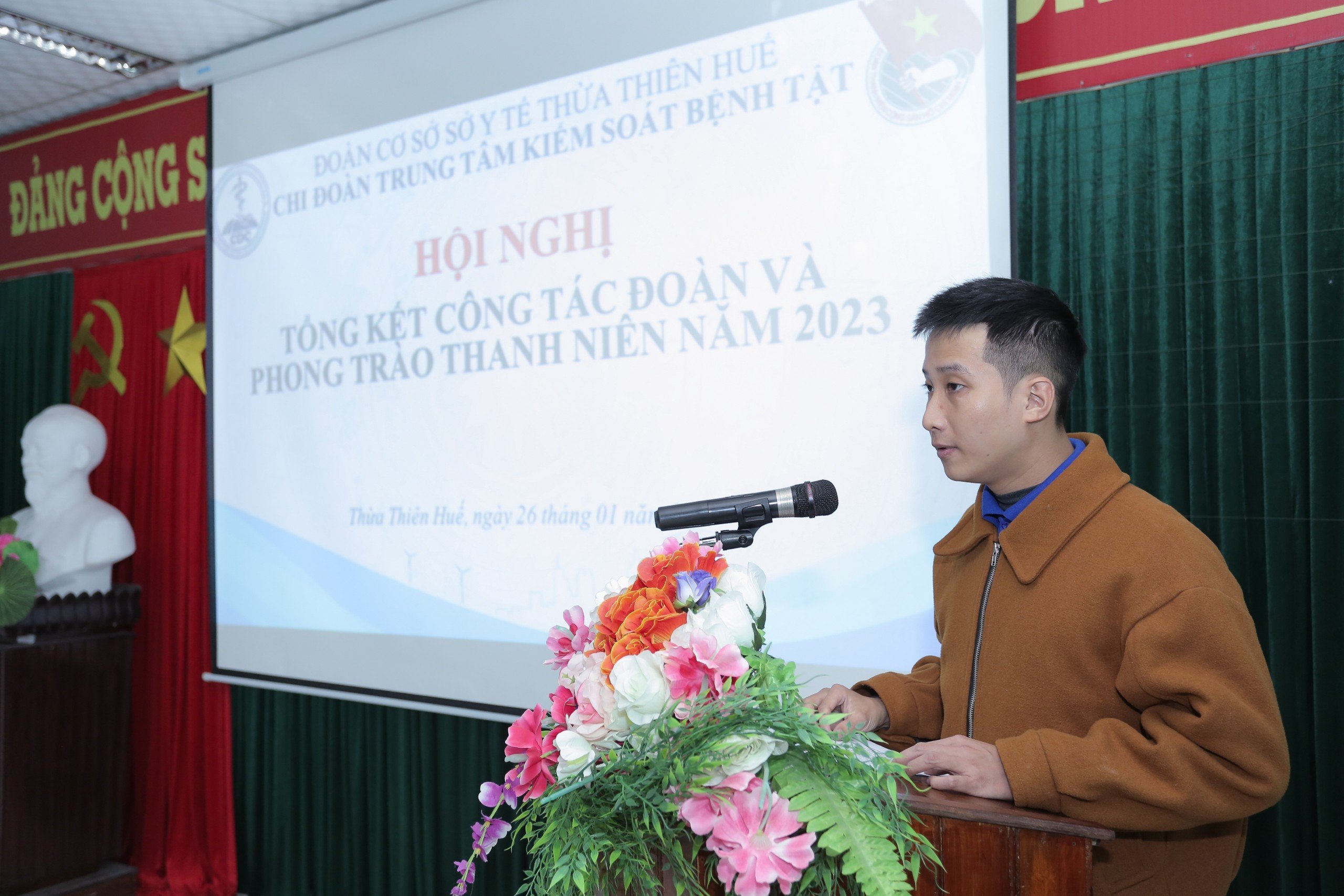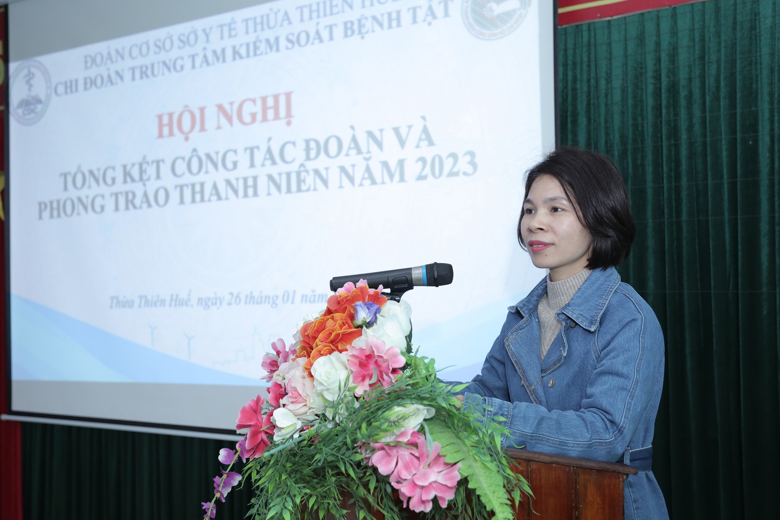 Chiều ngày 26 tháng 01 năm 2024, Ban Chấp hành Chi đoàn Trung tâm Kiểm soát bệnh tật (TTKSBT) tổ chức hội nghị tổng kết công tác đoàn và phong trào thanh niên năm 2023 và triển khai kế hoạch năm 2024. Tham dự Hội nghị có Ths.BSCKII. Nguyễn Lê Tâm – Phó Bí thư Đảng bộ Bộ phận – Phó Giám đốc phụ trách TTKSBT; Ths.BSCKI. Hà Thị Mỹ Dung – Chủ tịch Công đoàn cơ sở TTKSBT, cùng với sự có mặt của các đồng chí là đoàn viên thanh niên của Chi đoàn.