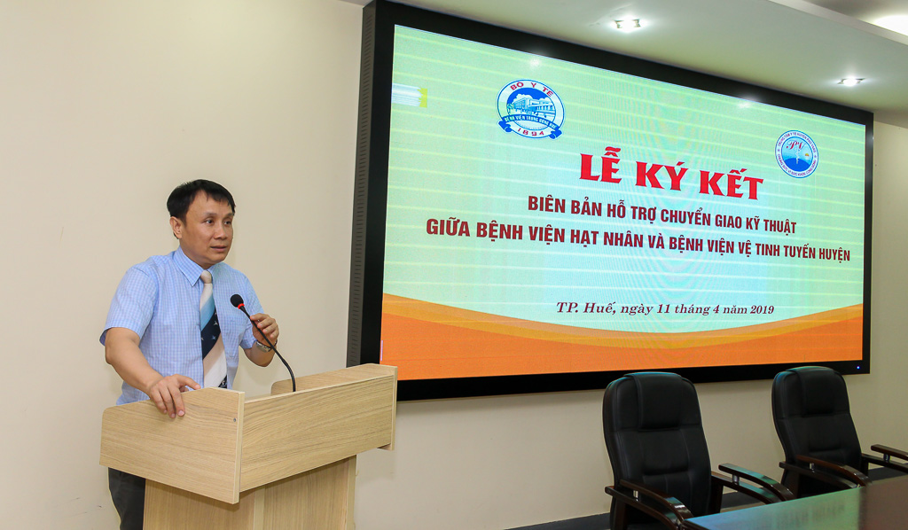 Ngày 11/4/2019, Bệnh viện Trung Ương Huế đã tổ chức buổi lễ Công bố quyết định Giám đốc Trung tâm Đột quỵ và lễ Ký kết biên bản hỗ trợ chuyển giao kỹ thuật giữa bệnh viện hạt nhân và bệnh viện vệ tinh tuyến huyện. Tham dự buổi lễ có GS.TS Phạm Như Hiệp- Giám đốc Bệnh viện TW Huế; TS.BS Nguyễn Nam Hùng- Giám đốc Sở Y tế; BS.CKII Trương Như Sơn- Giám đốc Trung tâm Y tế huyện Phú Vang; Ban lãnh đạo Bệnh viện TW Huế; trưởng các phòng ban Sở Y tế cùng lãnh đạo các TTYT huyện/thị xã/thành phố.