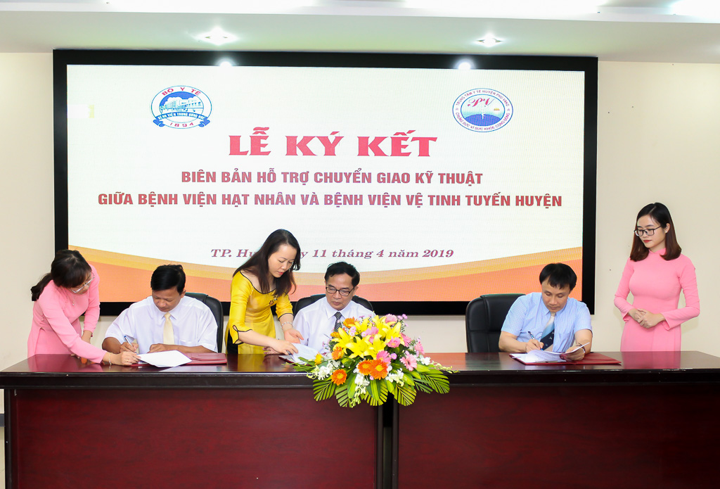 Cũng trong dịp này, Bệnh viện Trung Ương Huế đã tiếp nhận TTYT huyện Phú Vang làm Bệnh viện vệ tinh của Bệnh viện Trung Ương Huế và cùng với Sở Y tế tỉnh Thừa Thiên Huế thống nhất tổ chức lễ Ký kết biên bản ghi nhớ về việc hỗ trợ chuyển giao kỹ thuật giữa Bệnh viện hạt nhân (Bệnh viện TW Huế) và Bệnh viện vệ tinh (TTYT huyện Phú Vang) nhằm nâng cao trình độ chuyên môn kỹ thuật và chất lượng khám chữa bệnh cho TTYT huyện Phú Vang, đáp ứng nhu cầu chăm sóc sức khỏe của nhân dân địa phương.