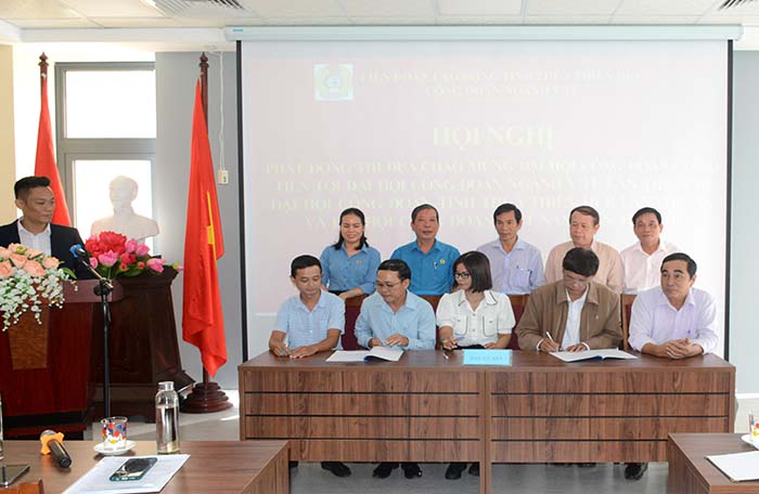 Ngay sau hội nghị, Công đoàn Ngành tổ chức “Ký Giao ước thi đua” gồm 6 nội dung cụ thể là: thi đua “Đảm nhận, thực hiện công trình, phần việc Công đoàn”; thi đua thực hiện “01 triệu sáng kiến - nỗ lực vượt khó, sáng tạo, quyết tâm chiến thắng đại dịch Covid-19”; thi đua “Nâng cao hiệu quả công tác chăm lo, đại diện bảo vệ đoàn viên, người lao động”; thi đua “Nâng cao đời sống văn hóa tinh thần của đoàn viên và người lao động”; thi đua “Đổi mới, nâng cao chất lượng công tác truyền thông Công đoàn”; thi đua “Phát triển đoàn viên, thành lập công đoàn cơ sở”. Công đoàn ngành Y tế đề nghị Công đoàn cơ sở 9 TTYT huyện/thị xã/thành phố, 17 đơn vị trực thuộc và 5 Công đoàn cơ sở ngoài công lập phổ biến rộng rãi nội dung phát động thi đua, thể hiện qua hiệu quả công việc của mỗi tập thể và cá nhân, góp phần nâng cao uy tín của tổ chức Công đoàn…
