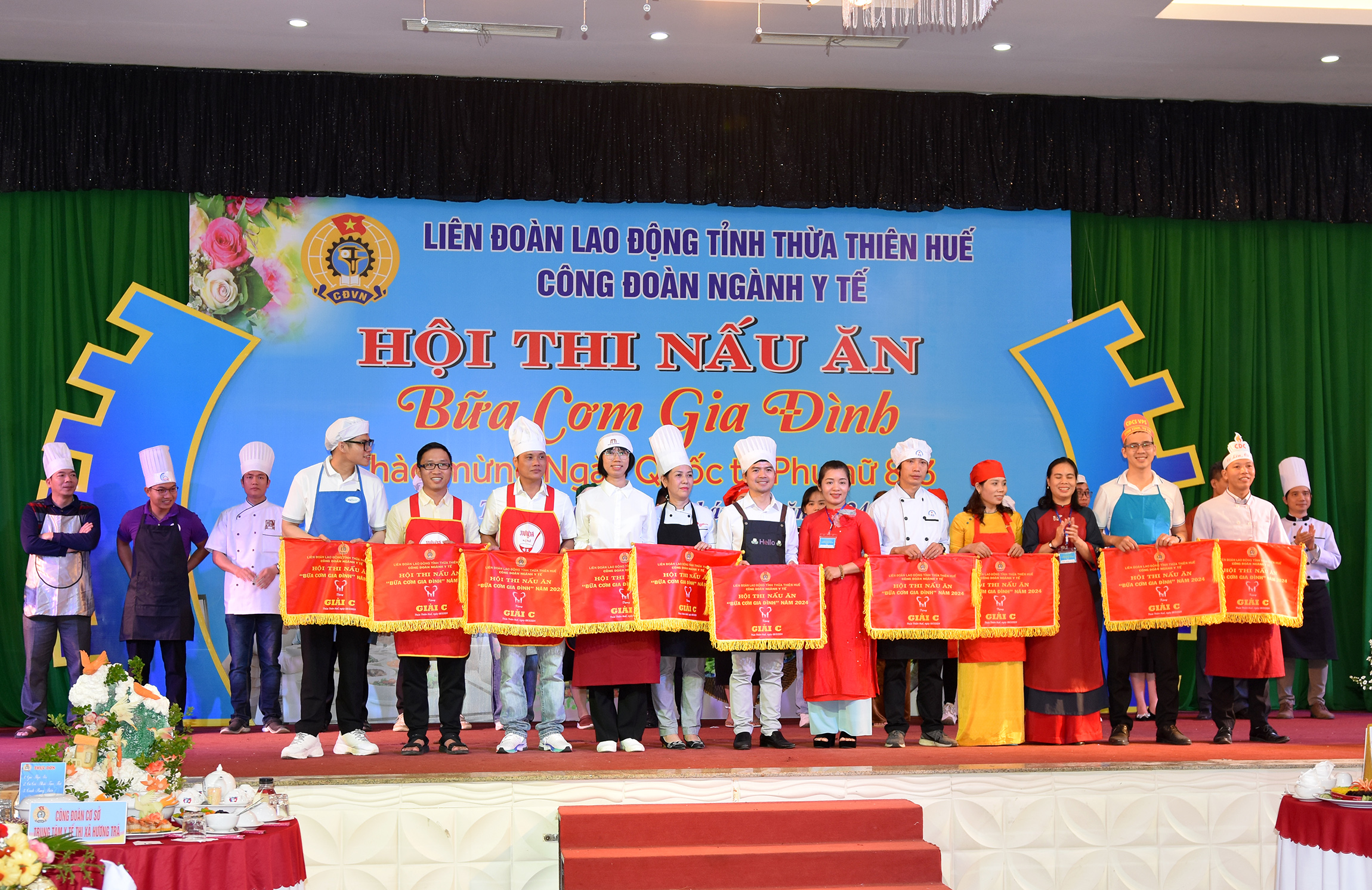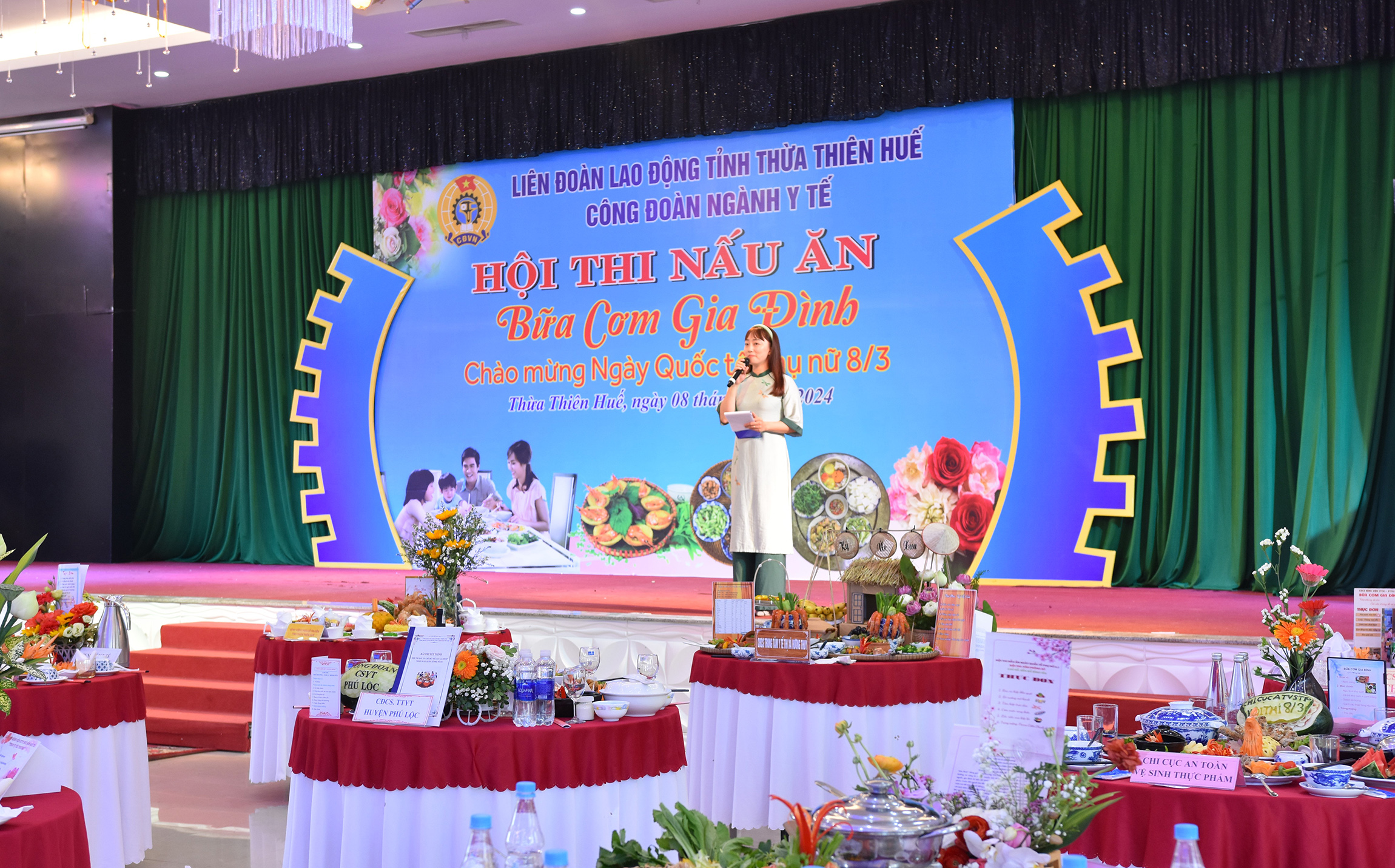 Ngày 08/3/2024, Công đoàn Ngành Y tế Thừa Thiên Huế tổ chức Hội thi nấu ăn với chủ đề “Bữa ăn gia đình” chào mừng Ngày Quốc tế Phụ nữ 8/3. Tham gia hội thi có 112 đoàn viên Công đoàn và đông đảo các cổ động viên cùng Chủ tịch, BCH Công đoàn đến từ 28 Công đoàn cơ sở trực thuộc Công đoàn Ngành Y tế và lãnh đạo các TTYT và đơn vị trực thuộc Sở Y tế.