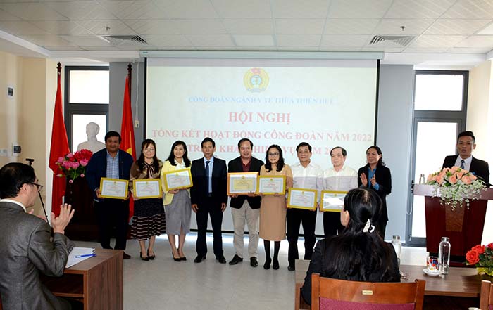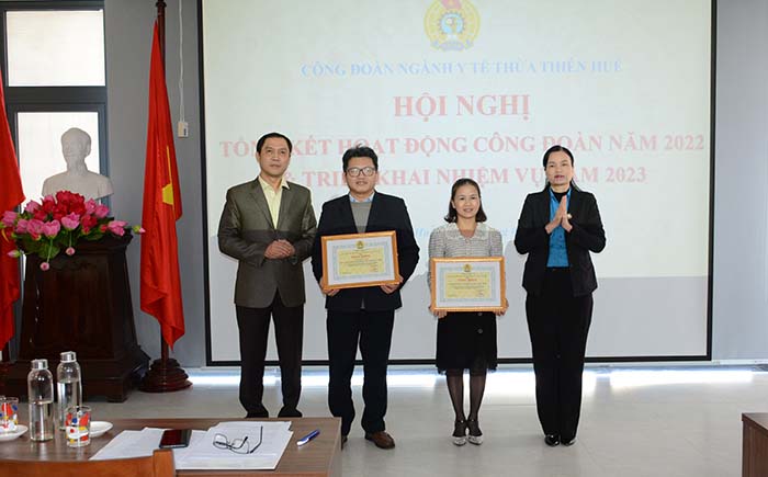 Nhằm động viên kịp thời, dịp này LĐLĐ tỉnh tặng Bằng khen cho CĐCS Trung tâm kiểm nghiện Thuốc, Mỹ phẩm, thực phẩm; Bệnh viện Mắt Huế và 8 cá nhân. Ban Chấp hành Công đoàn ngành tặng Giấy khen cho 8 tập thể và 53 cá nhân có thành tích trong “Phong trào thi đua Lao động giỏi và xây dựng tổ chức Công đoàn vững mạnh năm 2022”./.