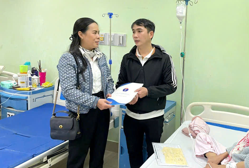 Đồng chí Tôn Nữ Thùy Trân - Phó Chủ tịch Công đoàn Ngành Y tế trao "Quỹ Tương thân, tương trợ" cho người nhà ĐVCĐ công tác tại TTYT quận Phú Xuân hiện đang điều trị tại Bệnh viện Trung ương Huế.