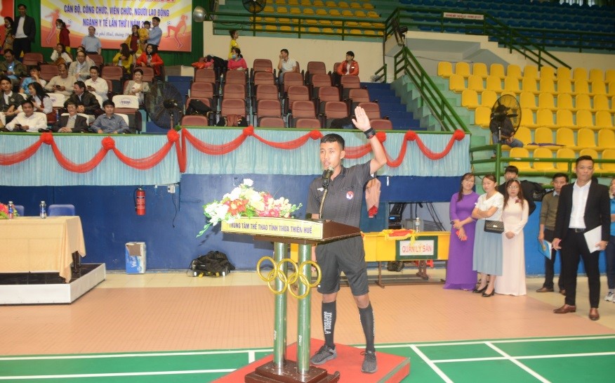 DSCKI Lê Viết Bắc - Phó Giám đốc sở - Chủ tịch Công đoàn Ngành Y tế phát biểu khai mạc giải, đồng thời kêu gọi các Công đoàn cơ sở luôn tạo sân chơi lành mạnh, thường xuyên duy trì phong trào thể dục thể thao tại đơn vị. Phát động phong trào TDTT trong toàn thể ĐVCĐ, tích cực thực hiện cuộc vận động “Toàn dân rèn luyện thân thể theo gương Bác Hồ vĩ đại" và phong trào “Khỏe để xây dựng và bảo vệ Tổ quốc”, thường xuyên rèn luyện sức khỏe, nâng cao thể lực, tạo cho tinh thần thoải mái, vui tươi, lành mạnh, tạo sự hưng phấn, hứng thú trong công việc góp phần hoàn thành tốt mọi nhiệm vụ được giao.