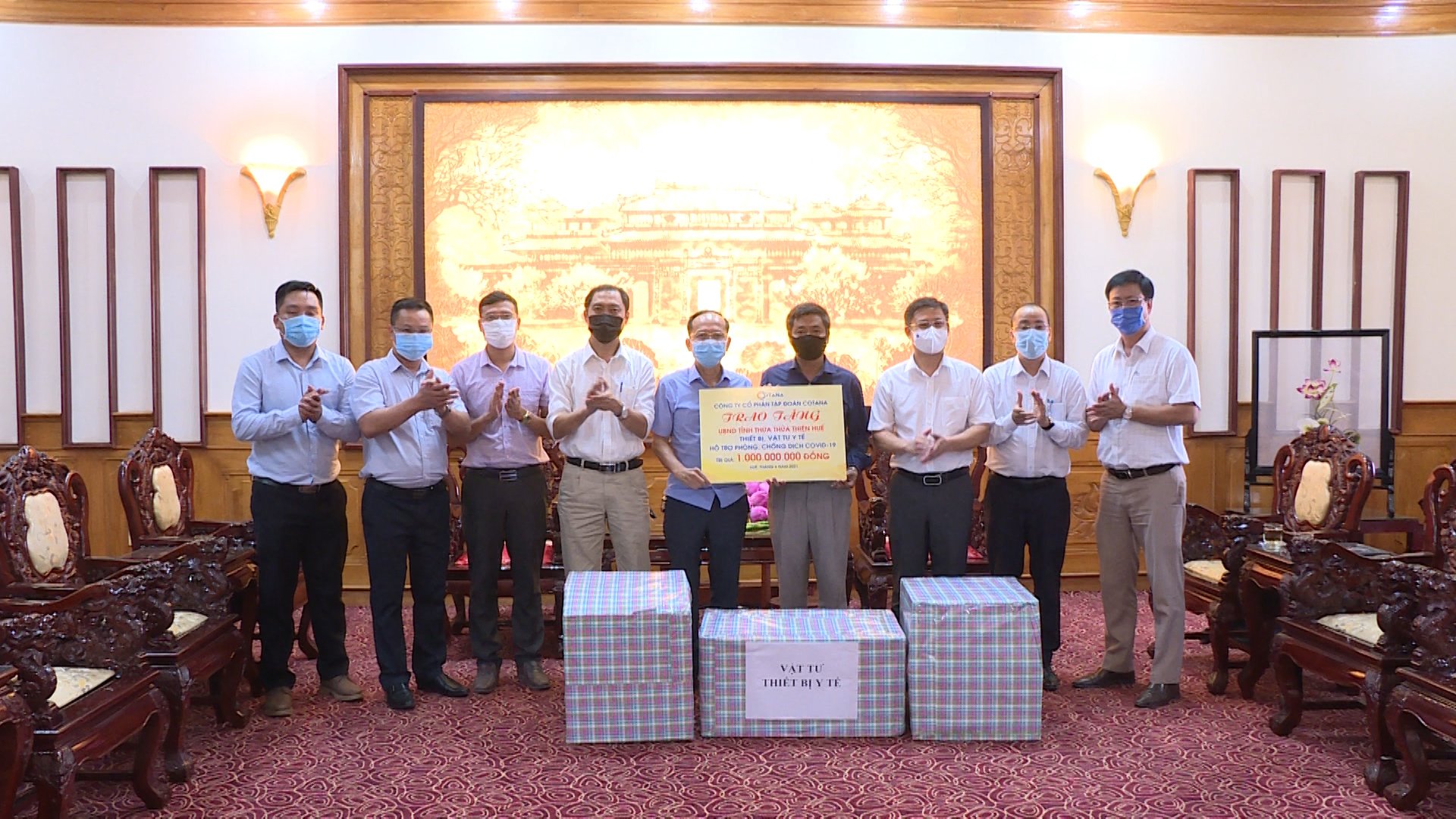 Ngày 25- 6-2021, Công ty Cổ phần Đầu tư và Phát triển bất động sản Cotana Capital đã trao hỗ trợ cho Tỉnh Thừa Thiên Huế thiết bị vật tư y tế phòng chống, dịch Covid-19. Tham dự buổi tiếp nhận, có Ông Nguyễn Thanh Bình- Phó Chủ tịch UBND tỉnh, Ông Trần Kiêm Hảo - Giám đốc Sở Y tế, Ông Hoàng Văn Đức - Giám đốc Trung tâm Kiểm soát bệnh tật tỉnh, Ông Đặng Anh Tuấn – Phó Chủ tịch HĐQT Cotana
