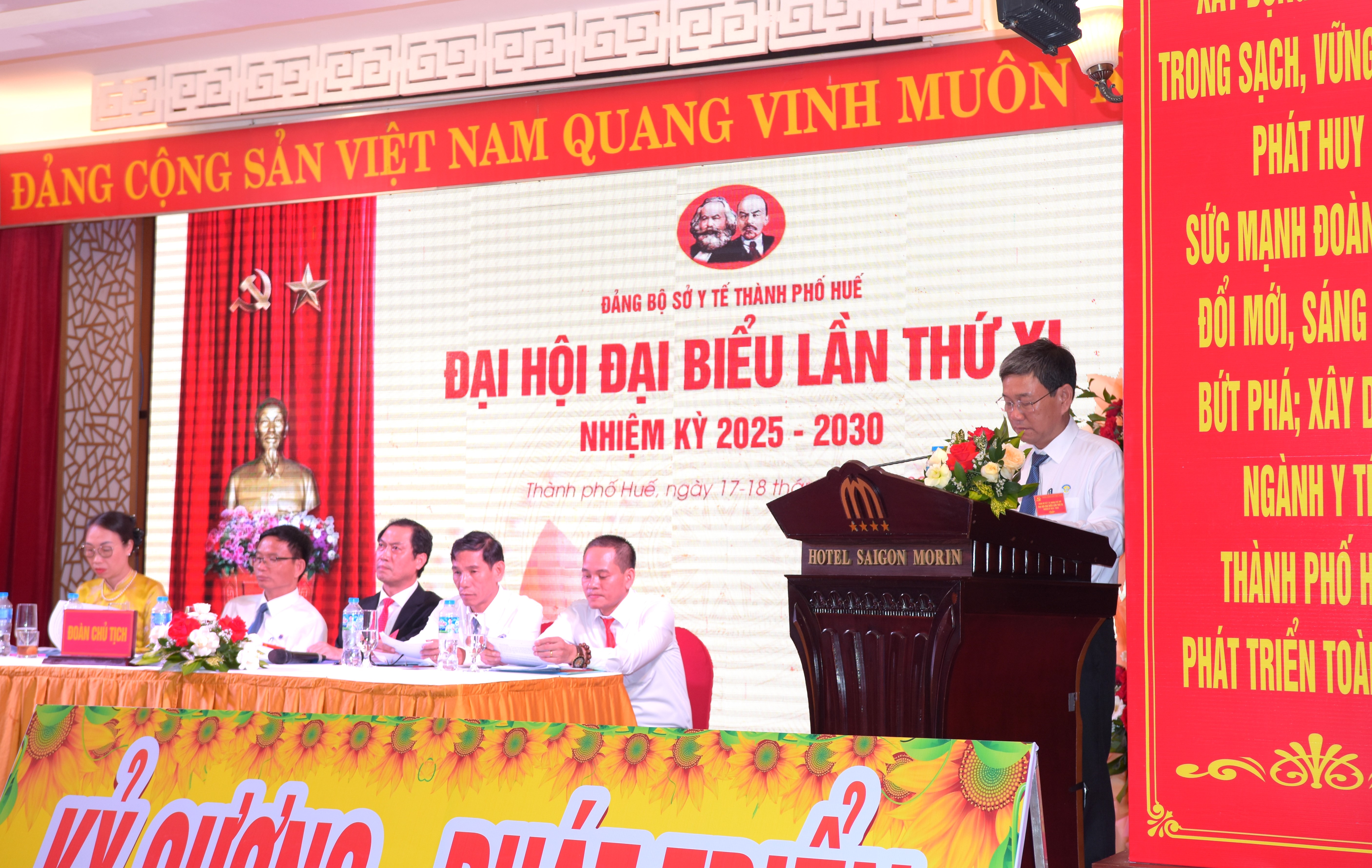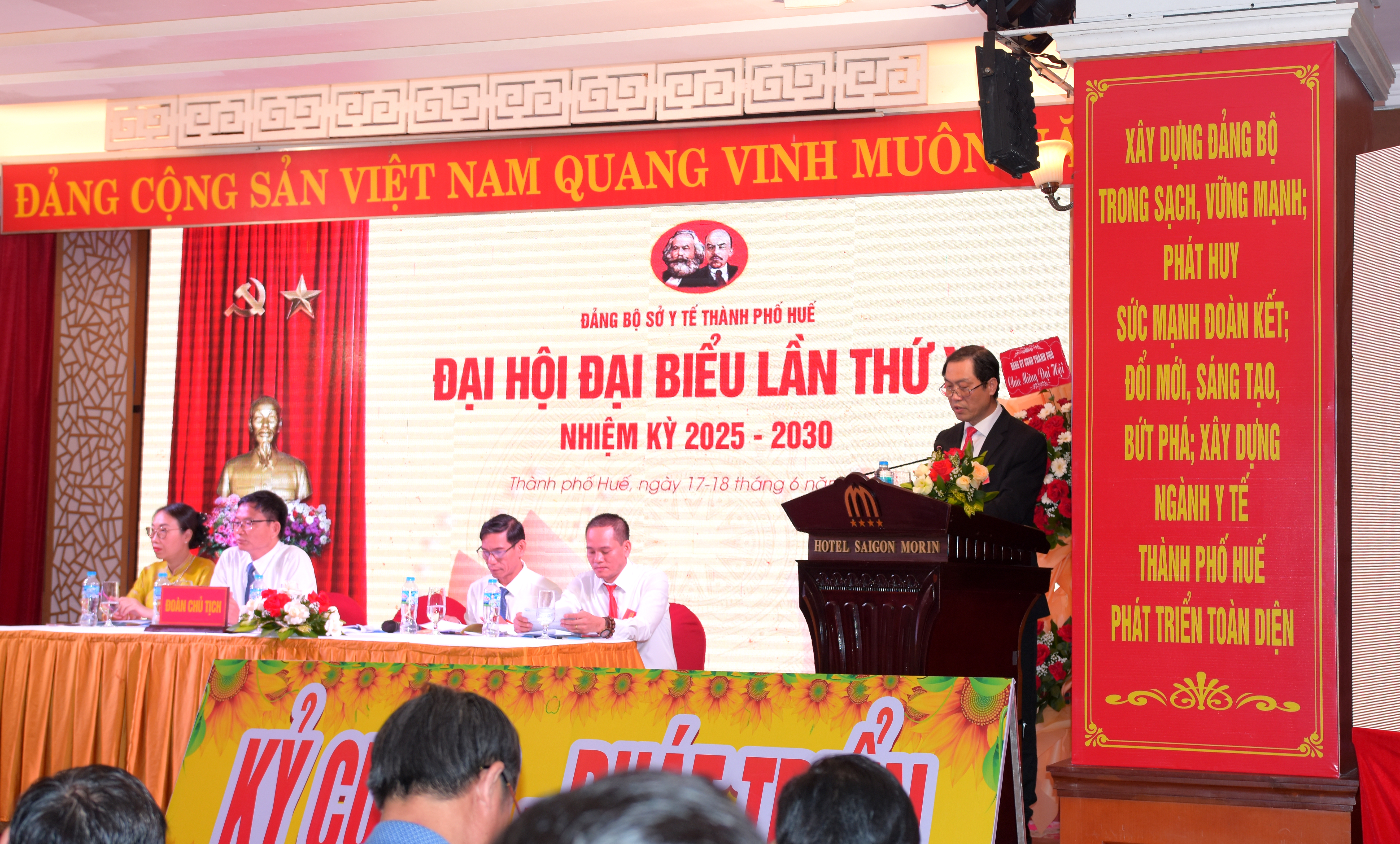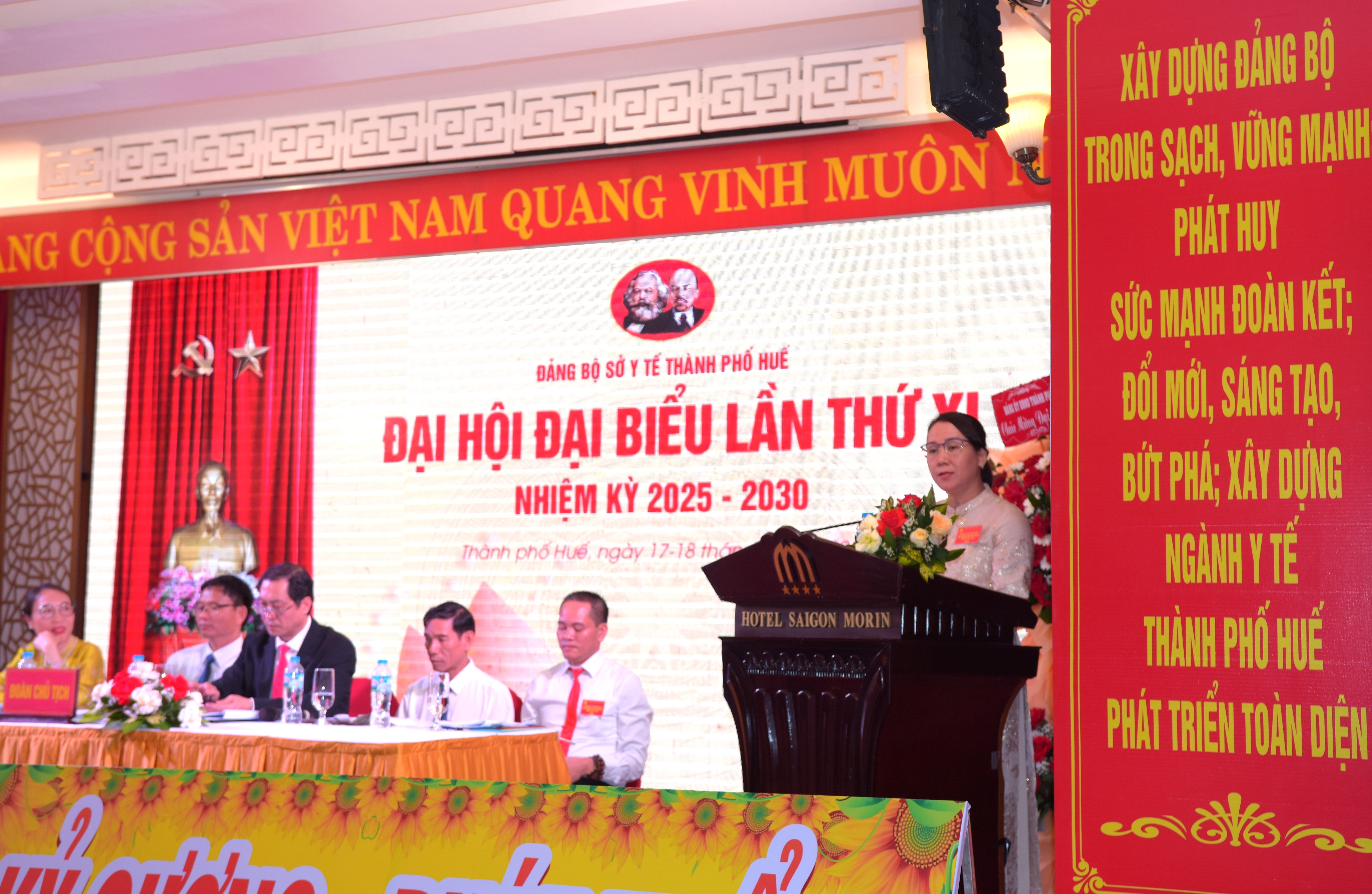 Đồng thời, đề nghị Đại hội, xác định phương hướng, tập trung thảo luận giải pháp cụ thể cho nhiệm kỳ 2025-2030, tiếp tục phát huy vai trò lãnh đạo toàn diện, Tập trung xây dựng đội ngũ cán bộ y tế chất lượng cao, có bản lĩnh chính trị, phẩm chất đạo đức. Tăng cường công tác xây dựng Đảng, phát huy vai trò, tinh thần trách nhiệm của cán bộ/đảng viên, giữ vững nguyên tắc tập trung dân chủ, đoàn kết nội bộ. Xây dựng Đảng bộ sở Y tế vững mạnh toàn diện, tiếp tục có những đóng góp tích cực đáp ứng mọi yêu cầu, nhiệm vụ công tác chăm sóc bảo vệ và nâng cao sức khoẻ nhân dân trong giai đoạn mới, góp phần thực hiện thắng lợi và xây dựng thành phố Huế phát triển bền vững trở thành Trung tâm y tế chuyên sâu của Miền Trung - Tây Nguyên, của cả nước và khu vực Đông Nam Á.