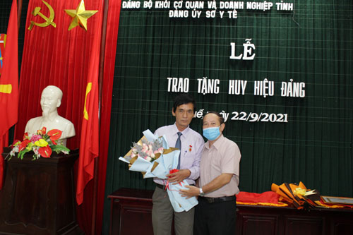 Chiều ngày 22-9-2021, Đảng bộ Sở Y tế tổ chức Lễ trao Huy hiệu 30 năm tuổi đảng cho đồng chí Hoàng Hữu Nam, nguyên Phó Bí thư Đảng ủy, nguyên Phó Giám đốc Sở Y tế. Đến dự buổi lễ có đồng chí Trần Kiêm Hảo- Bí thư Đảng ủy, Giám đốc Sở Y tế; các đồng chí Ủy viên Ban Thường vụ, Ủy viên Ban chấp hành Đảng ủy Sở Y tế, các đồng chí Bí thư các chi, đảng bộ trực thuộc; Bí thư, Phó Bí thư các Chi bộ ĐBBP Văn phòng Sở; các đảng viên Chi bộ Thanh tra.