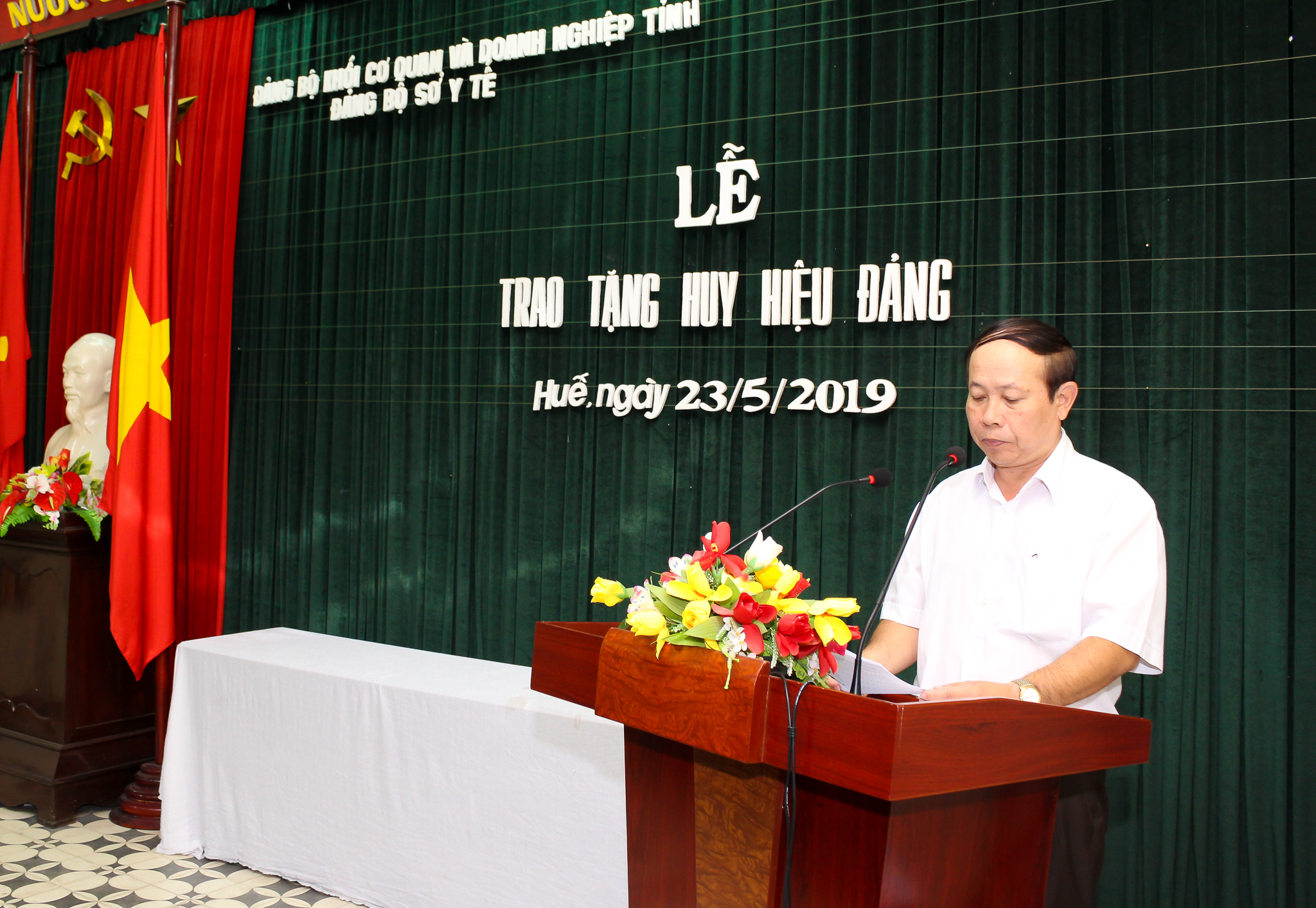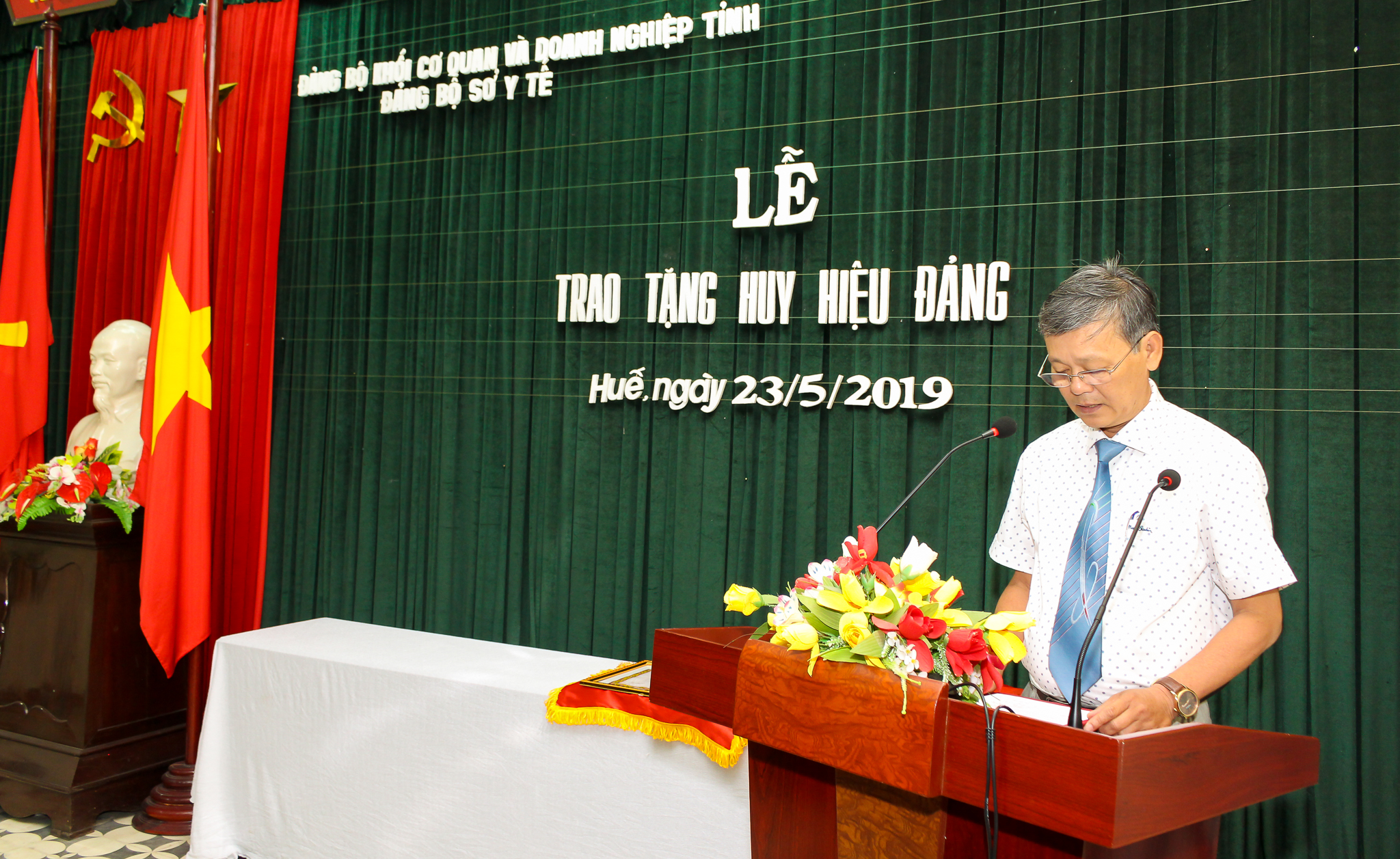Tại buổi Lễ trao huy hiệu Đảng, đồng chí Nguyễn Đắc Ngọc - Ủy viên Thường vụ, Trưởng phòng Tổ chức cán bộ Sở Y tế đã công bố quyết định của Tỉnh ủy Thừa Thiên Huế về việc trao huy hiệu 30 năm tuổi Đảng cho đồng chí Trần Chí Thanh - đảng viên thuộc Đảng bộ Trung tâm Kiểm soát bệnh tật tỉnh. Đồng chí Nguyễn Nam Hùng - Bí thư Đảng ủy, Giám đốc Sở Y tế đã trao Quyết định và tặng hoa cho đồng chí Trần Chí Thanh.