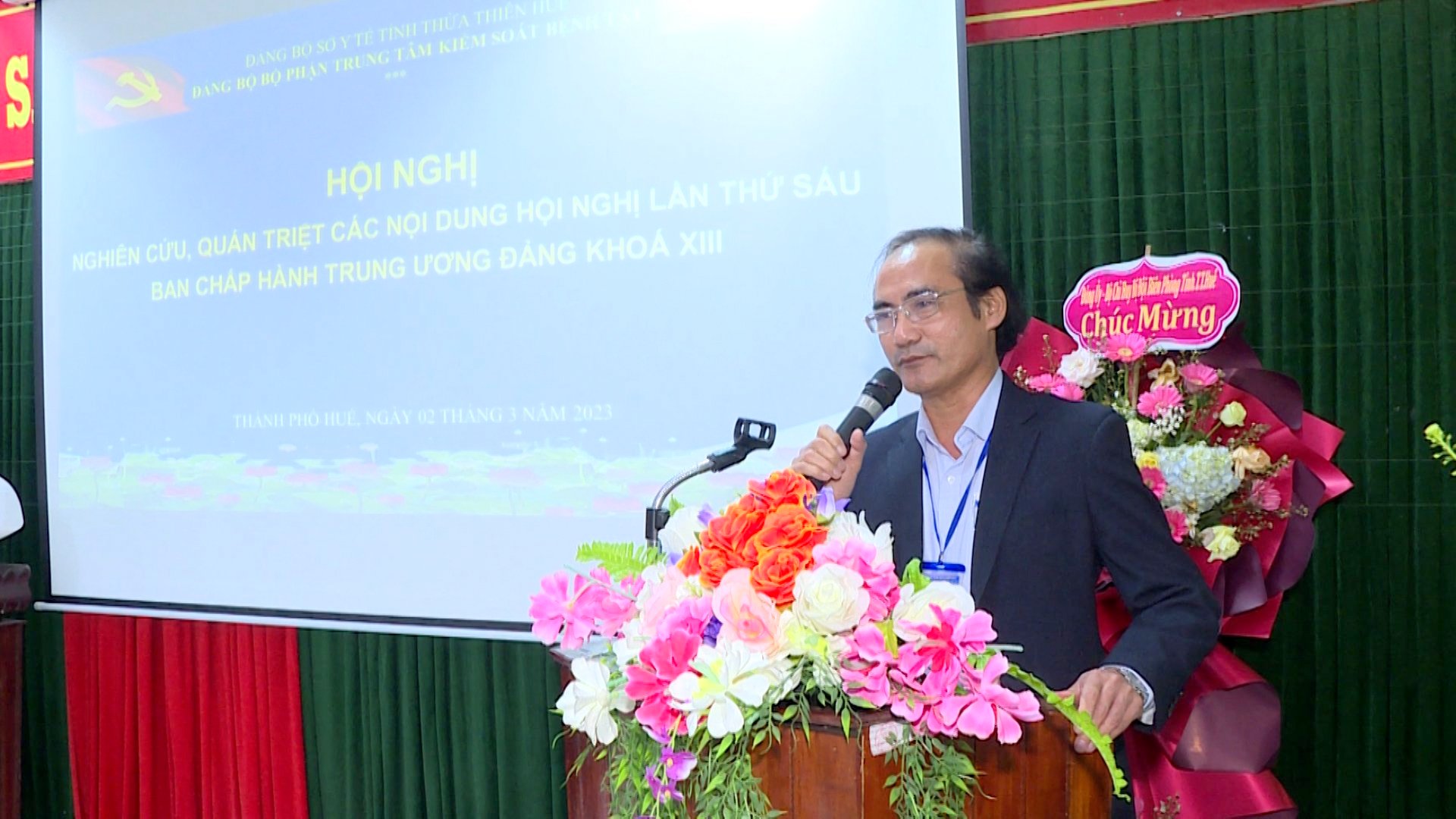 Thực hiện Kế hoạch số 148-KH/ĐU ngày 05/12/2022 của Đảng ủy Sở Y tế tỉnh Thừa Thiên Huế và kế hoạch số 08-KH/ĐUBP ngày 22/02/2023 của Đảng ủy bộ phận Trung tâm Kiểm soát bệnh tật về nghiên cứu, học tập, quán triệt, tuyên truyền và triển khai thực hiện Nghị quyết Hội nghị lần thứ 6 của Ban Chấp hành Trung ương Đảng khóa XIII. Chiều ngày 02/3/2023, Đảng ủy bộ phận Trung tâm KSBT đã tổ chức Hội nghị nghiên cứu, quán triệt Nghị quyết Hội nghị lần thứ 6 của Ban Chấp hành Trung ương Đảng khóa XIII với sự tham gia của Ban Chấp hành Đảng bộ Bộ phận và các đồng chí là Đảng viên của các Chi bộ trực thuộc Đảng bộ.