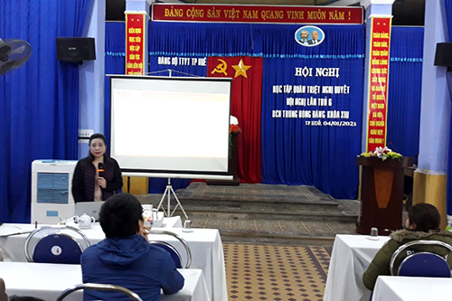 Tại Hội nghị, các đảng viên đã được đồng chí Trần Hải Yến truyền đạt 4 chuyên đề gồm: Nghị quyết số 27-NQ/TW ngày 09/11/2022 về tiếp tục xây dựng và hoàn thiện Nhà nước pháp quyền xã hội chủ nghĩa Việt Nam trong giai đoạn mới; Nghị quyết số 28-NQ/TW ngày 17/11/2022 về đổi mới phương thức lãnh đạo, cầm quyền của Đảng đối với hệ thống chính trị trong giai đoạn mới; Nghị quyết số 29-NQ/TW ngày 17/11/2022 về đẩy mạnh công nghiệp hóa - hiện đại hóa đất nước đến năm 2030, tầm nhìn đến năm 2045; Kết luận số 45-KL/TW ngày 17/11/2022 định hướng quy hoạch tổng thể quốc gia thời kỳ 2021 - 2030 đồng thời hướng dẫn một số vấn đề phục vụ nghiên cứu, học tập, quán triệt Nghị quyết,