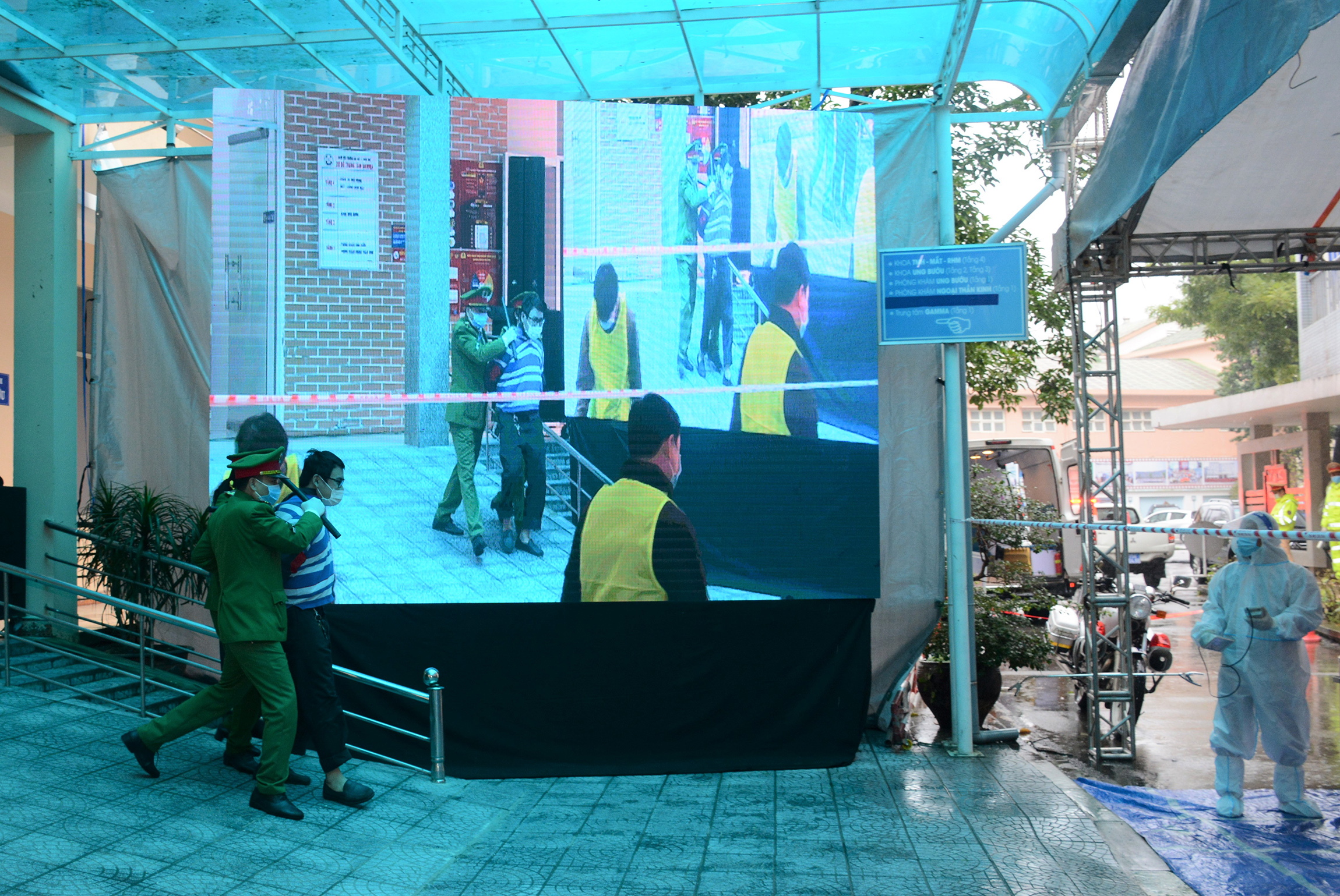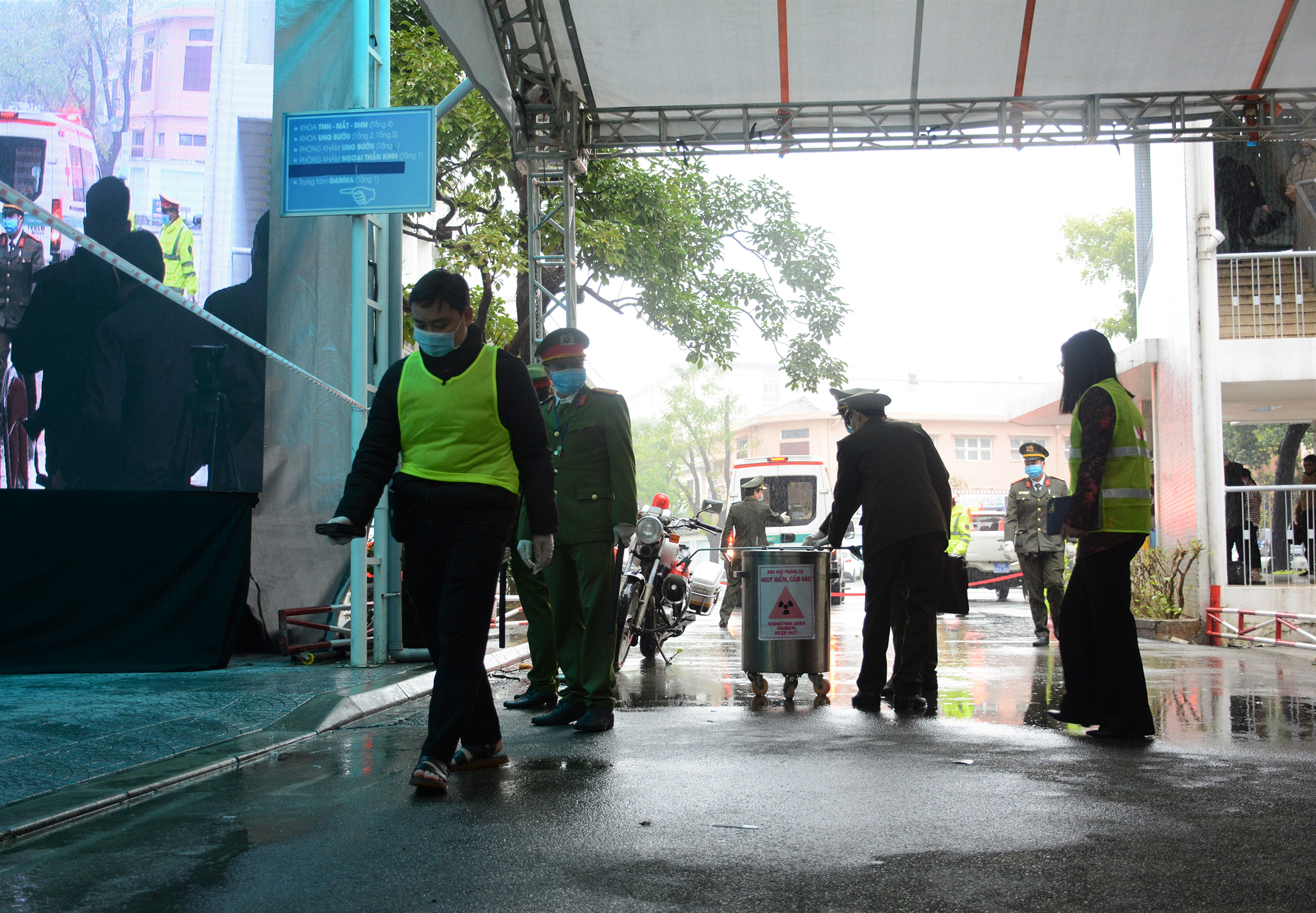 Công an vận động và trấn áp thành công 3 thanh niên ra khỏi Trung tâm xạ phẫu bằng Dao Gamma - Bệnh viện Trường Đại học Y Dược Huế.