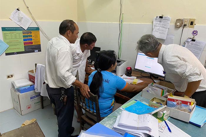 Cán bộ CDC tỉnh, TTYT huyện kiểm tra trên phần mềm TCMR tại TYT xã Hồng Bắc