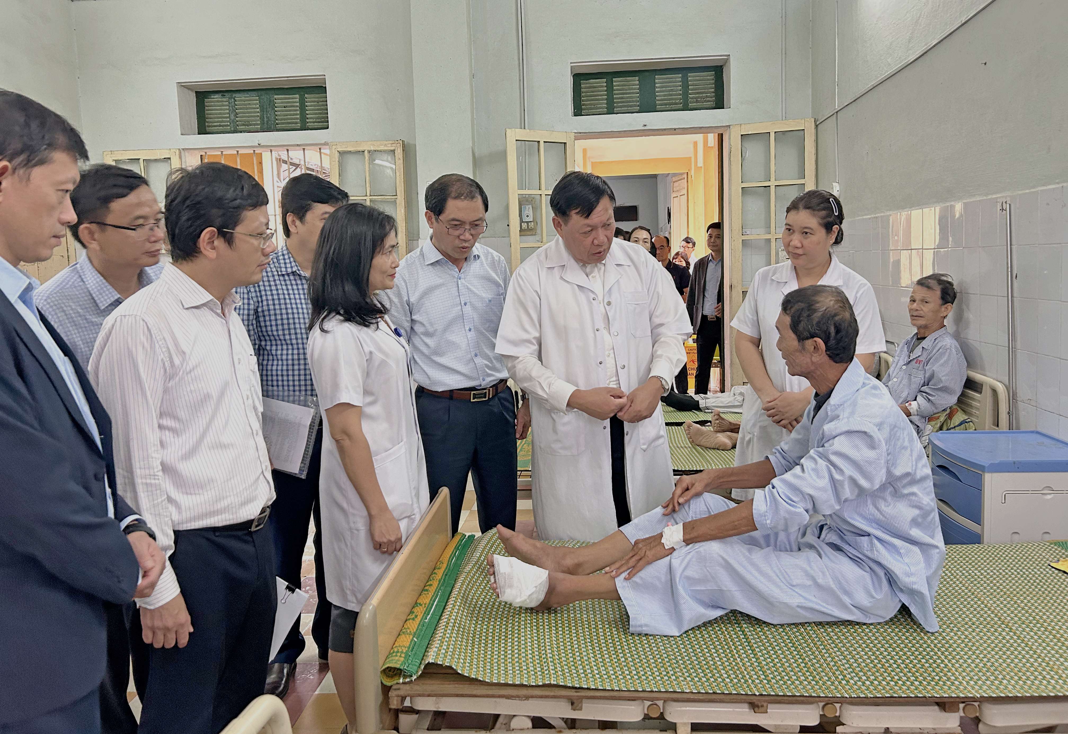 Thứ trưởng Đỗ Xuân Tuyên ân cần thăm hỏi, động viên các bệnh nhân và đội ngũ y bác sĩ, nhân viên y tế, đã nỗ lực duy trì hoạt động khám chữa bệnh trong điều kiện mưa lũ. Thứ trưởng Bộ Y tế trao tặng quà cho 2 cơ sở y tế bị ảnh hưởng và trao quà cho các bệnh nhân đang điều trị nội trú, động viên họ yên tâm điều trị, sớm hồi phục sức khỏe để trở về với gia đình.