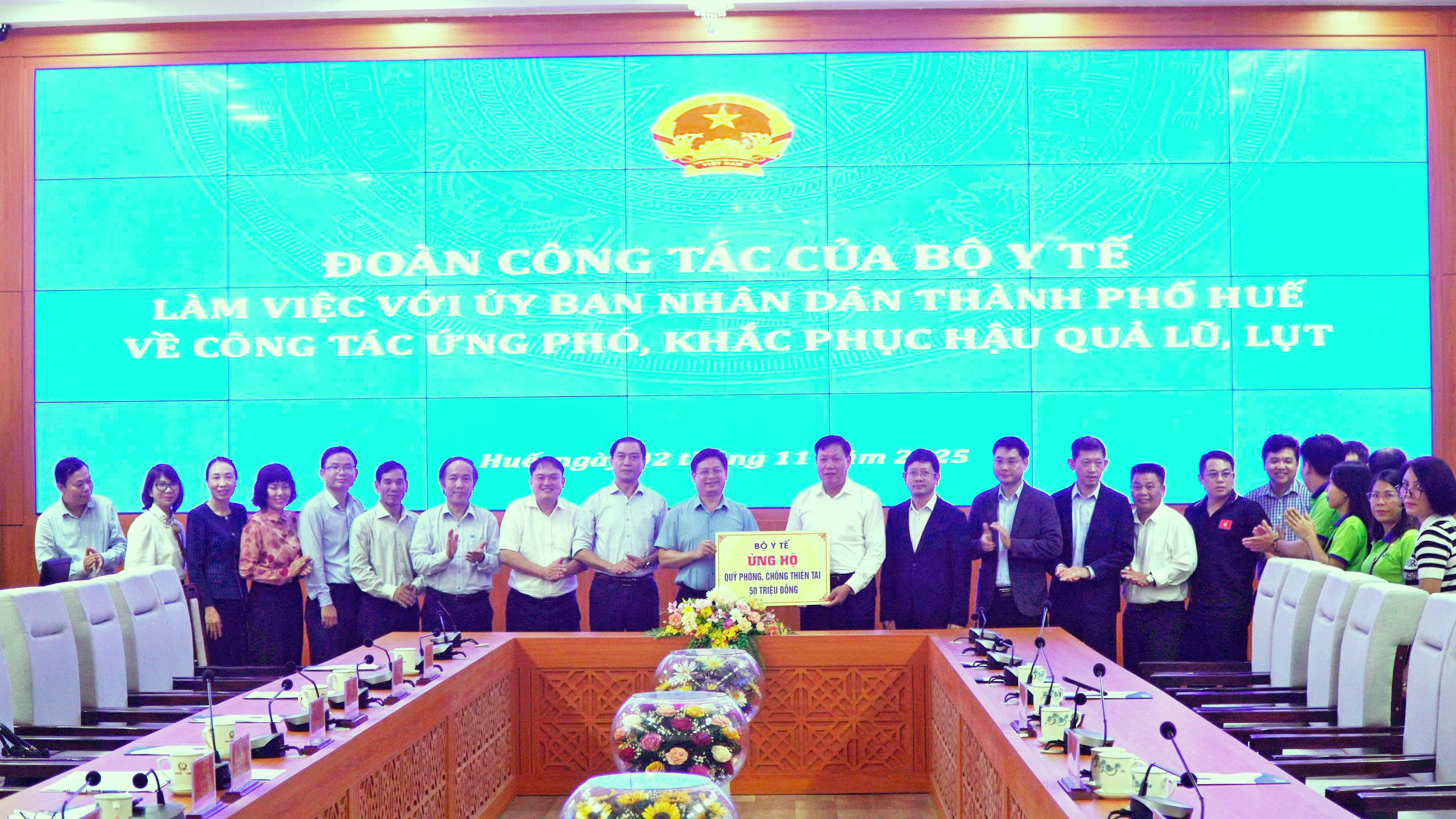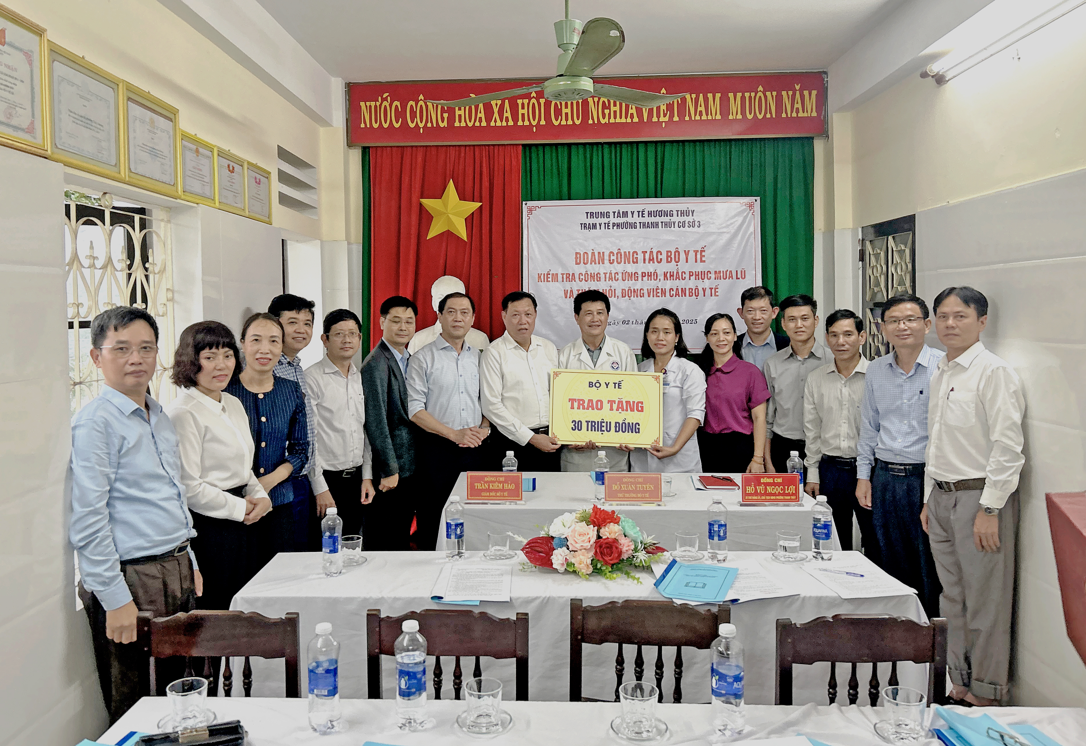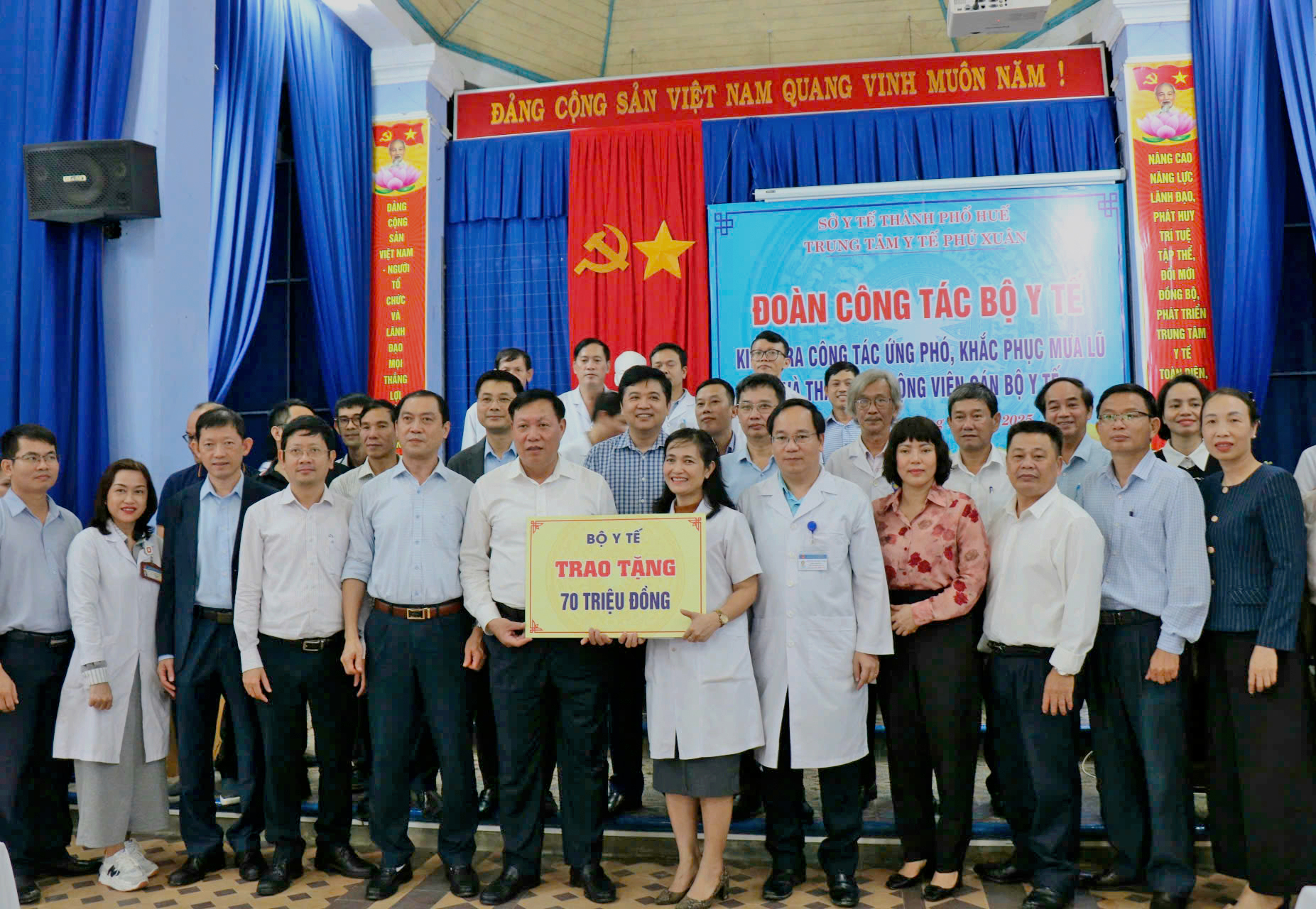 Dịp này, Bộ Y tế trao tặng cho Quỹ phòng chống thiên tai TP Huế 50 triệu đồng, trao tặng Sở Y tế 20 triệu đồng và các trang thiết bị, vật tư y tế, thuốc trị giá 850 triệu đồng, 2.000 kg Cloramin B.