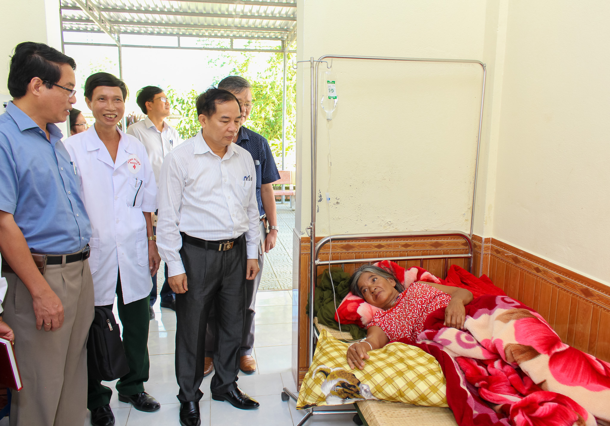 TS.BS Nguyễn Nam Hùng – Giám đốc Sở Y tế và đoàn công tác thăm hỏi bệnh nhân tại bệnh xá Quan dân y 92 - A Roàng
