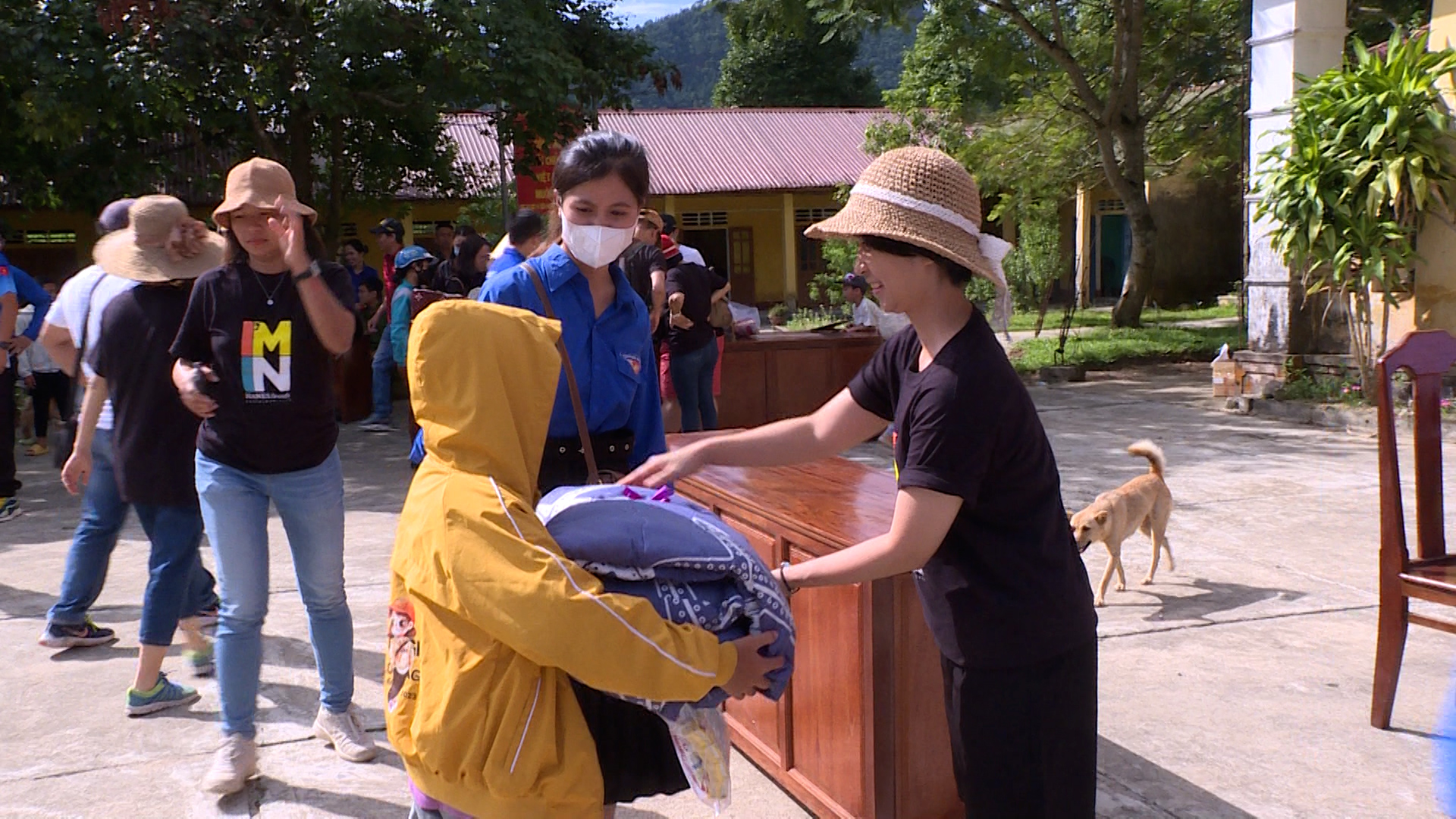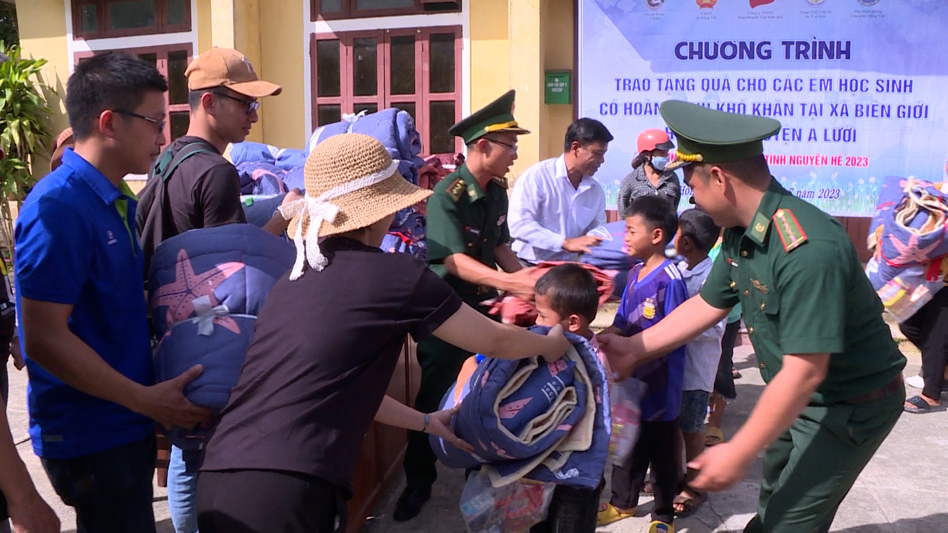 Đoàn đã trao 100 phần bánh kẹo cùng 100 bộ chăn gối cho học sinh nghèo tại Hồng Vân; 100 xuất cơm và 100 bộ chăn gối cho bệnh nhân có hoàn cảnh khó khăn đang điều trị nội trú tại TTYT huyện A Lưới.