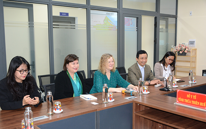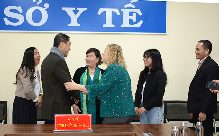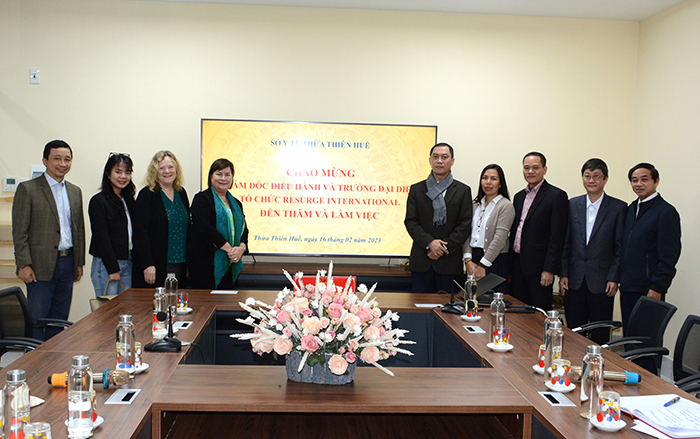 Sáng ngày 16-2-2023, PGS.TS.BS Trần Kiêm Hảo - Giám đốc Sở Y tế có buổi chào xã giao và tiếp đoàn công tác của Tổ chức Y tế ReSurge International do bà Claire Lachance quốc tịch Hoa Kỳ - Giám đốc điều hành ReSurge International làm Trưởng đoàn, cùng bà Beverly Kent - Trưởng đại diện ReSurge International tại Việt Nam và các thành viên trong đoàn. Cùng tiếp đoàn có BSCKII Thái Văn Tuấn - Chánh Văn phòng Sở Y tế, Phòng Nghiệp vụ Y Sở Y tế và Giám đốc BV Răng Hàm Mặt Huế.