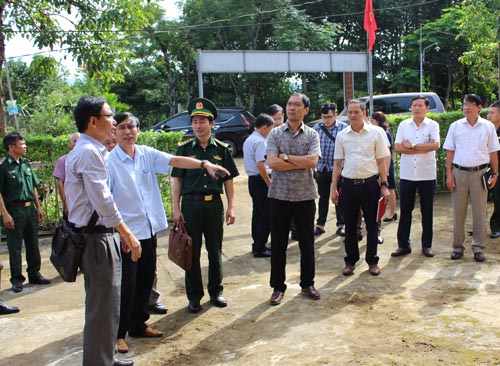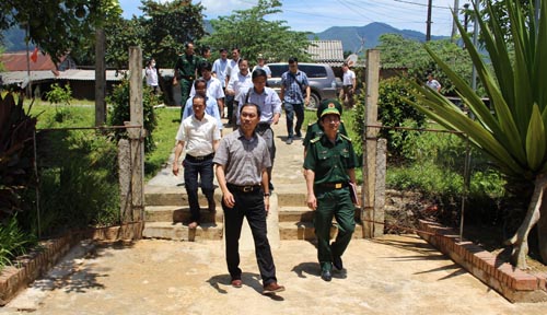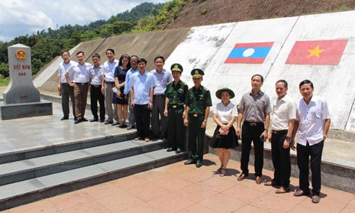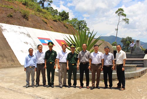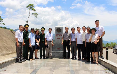 Tranh thủ giờ trưa Đoàn công tác lên thăm cột mốc 666 nằm trên địa bàn xã Lâm Đớt - huyện A Lưới giáp với cửa khẩu Tà Vàng tỉnh Sê Kông của nước bạn Lào./.