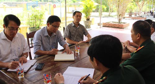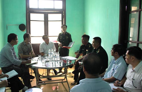 Thượng tá Đặng Văn Hướng - Chủ nhiệm Quân Y BĐBP tỉnh (ảnh trên) và cán bộ phụ trách các Trạm QDY báo cáo hoạt động kết hợp QDY trên địa bàn.