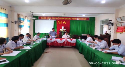 Đoàn cùng các thành viên đã có buổi làm việc với lãnh đạo UBND huyện và TTYT huyện Quảng Điền. Theo báo cáo tính đến ngày 07/6/2022 tỷ lệ tiêm chủng vắc xin phòng COVID-19 tại huyện Quảng Điền; Trẻ từ 5 đến dưới 12 tuổi (tiêm mũi 1: 31%), Trẻ từ 12 đến 17 tuổi (tiêm mũi 1: 99.9%, tiêm mũi 2: 99.7%). Đối với người từ 18 tuổi trở lên (tiêm mũi 1: 99.7%, tiêm mũi 2: 100%, Mũi bổ sung: 90%, Mũi nhắc lại lần 1: 34%).