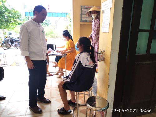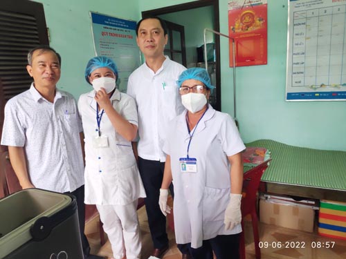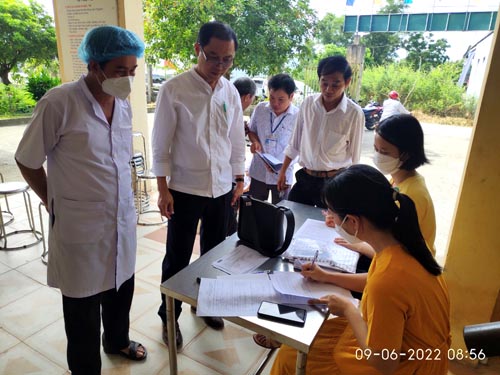 Ngày 09/6/2022 Đoàn công tác của Sở Y tế do PGS.TS Trần Kiêm Hảo - Giám đốc Sở Y tế làm trưởng đoàn cùng các thành viên ở Phòng Nghiệp vụ Y, Dược, Trung tâm Kiểm soát bệnh tật (CDC) tỉnh đi kiểm tra, đôn đốc công tác tiêm vaccine phòng Covid-19 tại huyện Quảng Điền và các xã Quảng Phước, Quảng Thọ, Quảng Vinh, Quảng Phú.