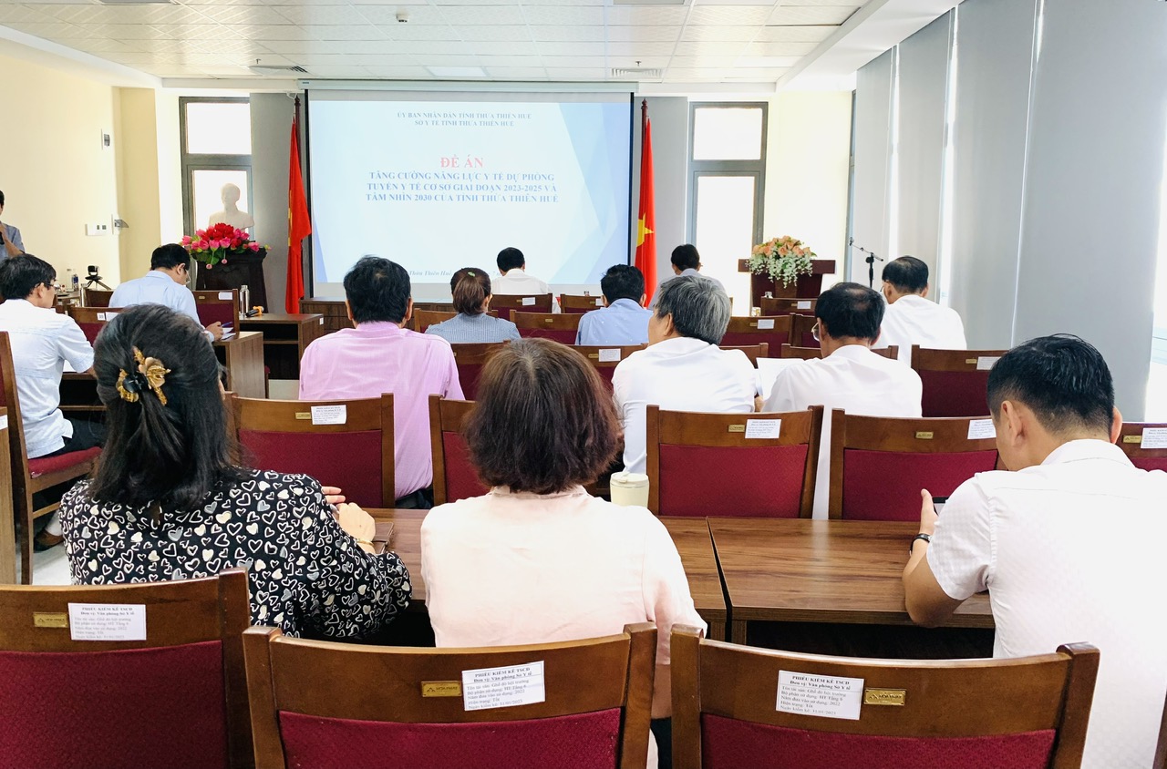 Chiều ngày 03/7/2023, Sở Y tế đã có cuộc họp nghe báo cáo lần thứ 2 về “Đề án tăng cường năng lực YTDP tuyến y tế cơ sở giai đoạn 2023-2025 và tầm nhìn 2030 trên địa bàn tỉnh”. Tham dự và chủ tri cuộc họp có PGS. TS. BS Trần Kiêm Hảo - Giám đốc Sở Y tế; đồng chí Hoàng Trọng Quý- Phó Giám đốc Sở Y tế cùng lãnh đạo các phòng thuộc Sở, Lãnh đạo Trung tâm Kiểm soát bệnh tật và các khoa, phòng; đại diện lãnh đạo Chi cục Dân số-KHHGĐ, Chi cục ATVSTP; đại diện lãnh đạo và phòng liên quan của Trung tâm Y tế các huyện, thị xã, thành phố Huế.