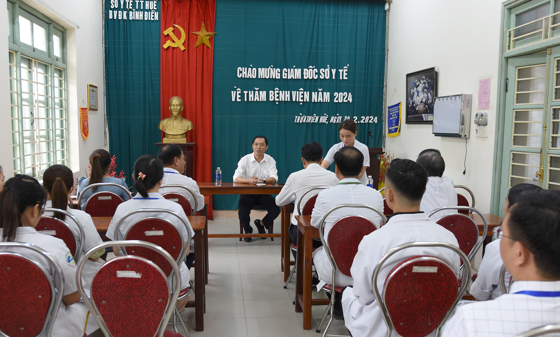 Chiều ngày 20/2/2024, PGS TS Trần Kiêm Hảo - Giám đốc Sở Y tế cùng lãnh đạo Phòng KH-TC, Phòng TCCB, Văn phòng Sở có chuyến thăm và làm việc với BVĐK Bình Điền. BSCKII Phan Lê Minh Tuấn - Giám đốc, cùng các Phó Giám đốc, Trưởng/Phó trưởng các khoa/phòng và nhân viên bệnh viện tiếp đón thân mật Đoàn.