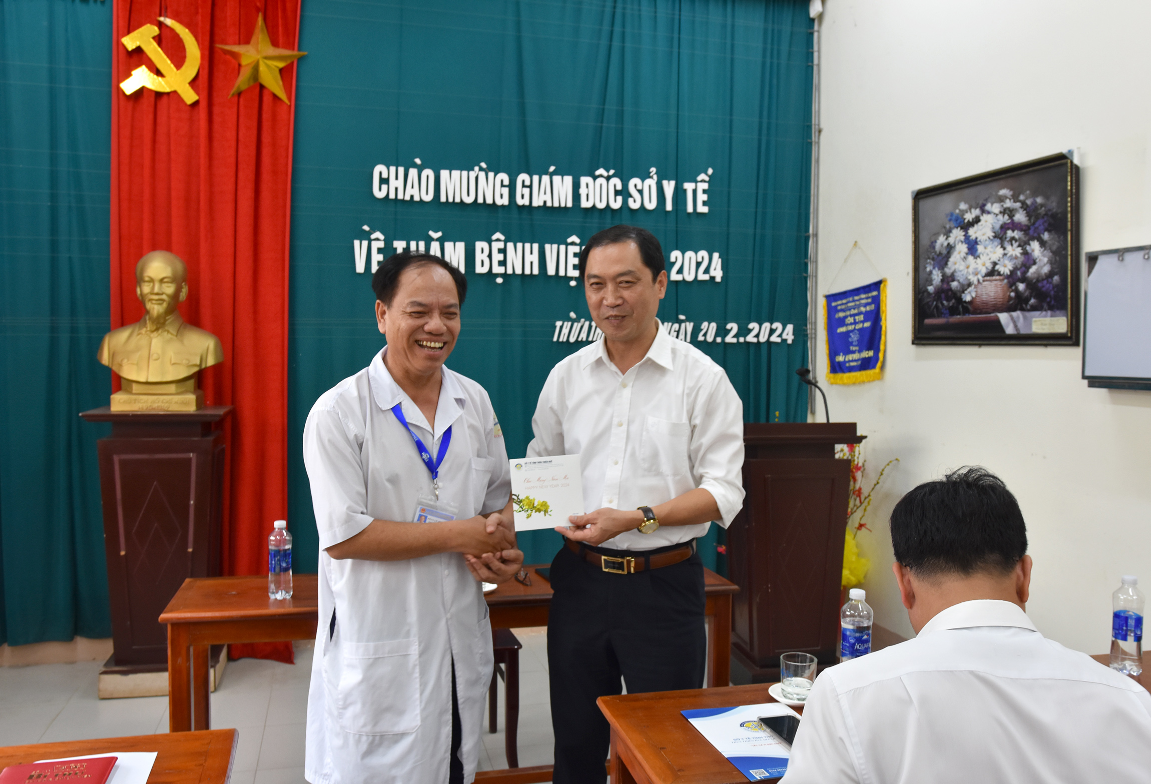 Trong không khí đầm ấm, phấn khởi, chân tình Giám đốc Sở Y tế Trần Kiêm Hảo gửi thông điệp, tặng quà đầu xuân Giáp Thìn, cùng những lời chúc tốt đẹp, sức khỏe, bình an, hạnh phúc, với nhiều thành đạt đến toàn thể cán bộ/nhân viên BVĐK Bình Điền. Gửi gắm sự tin tưởng và mong muốn, năm 2024 toàn thể cán bộ nhân viên BV luôn đoàn kết, đồng lòng, vượt qua mọi thách thức, phát huy trí tuệ, năng lực sáng tạo, linh hoạt đổi mới, nỗ lực phấn đấu hoàn thành tốt các chỉ tiêu, đạt được nhiều kết quả trong công tác CSSKND.