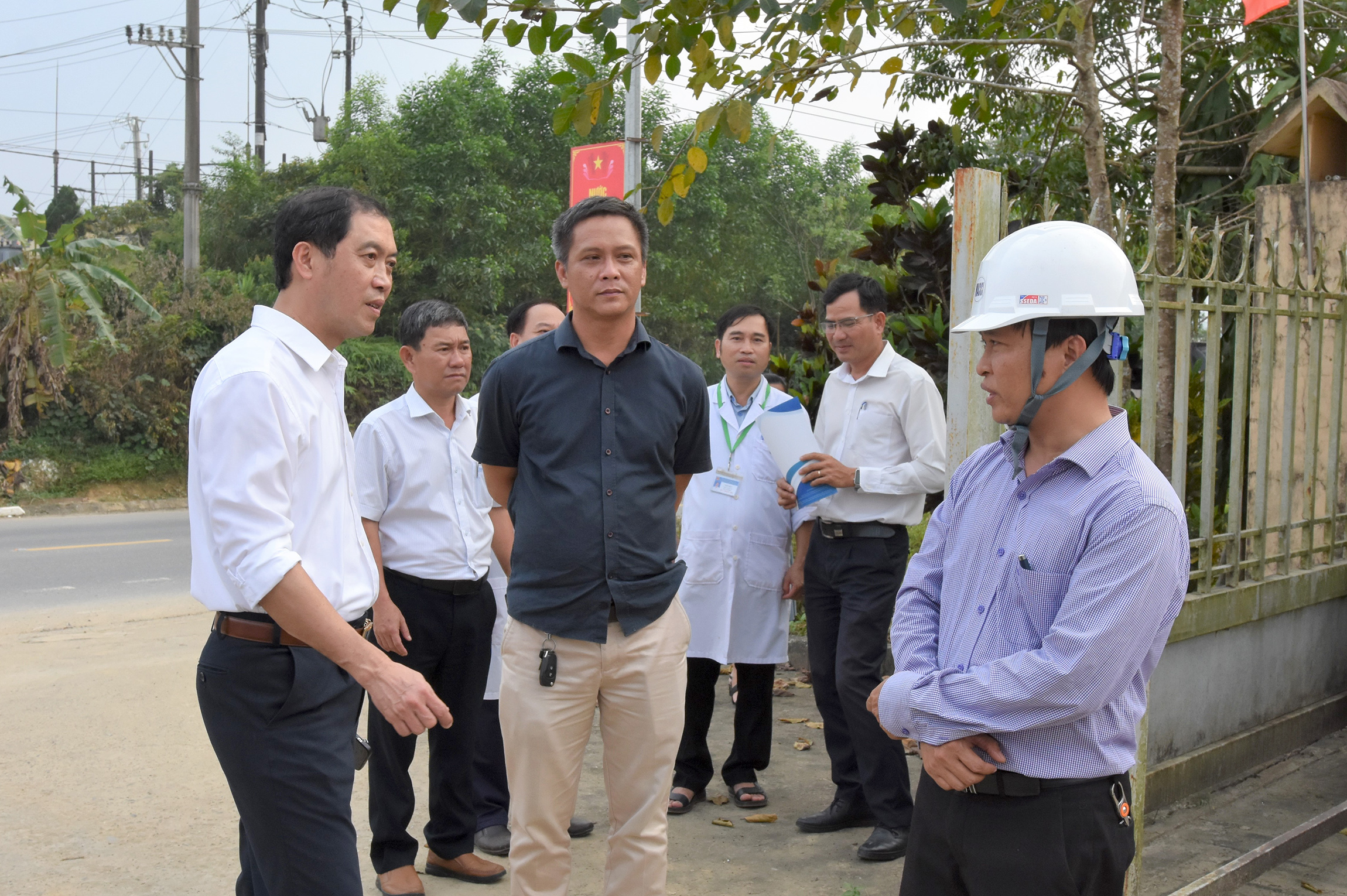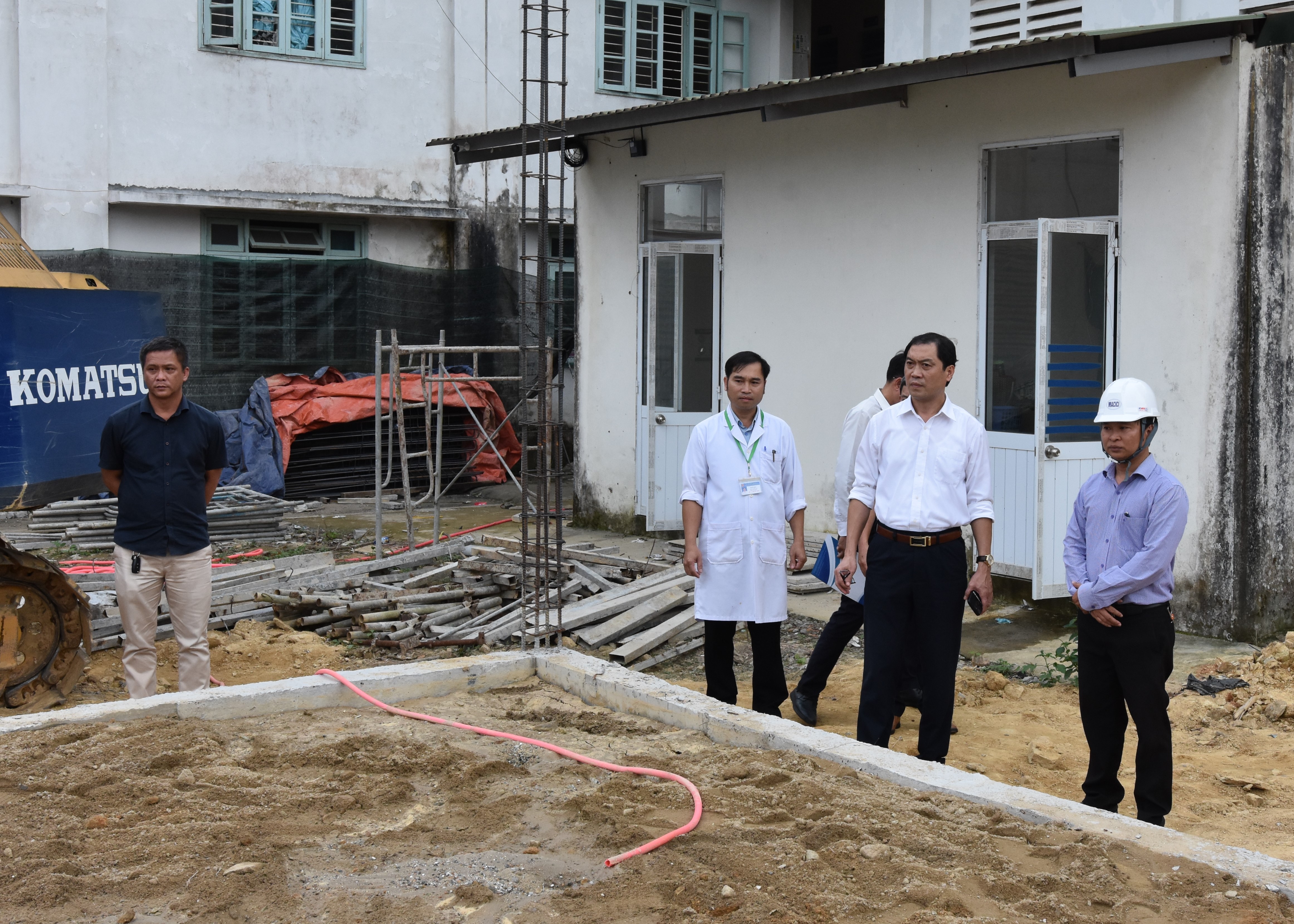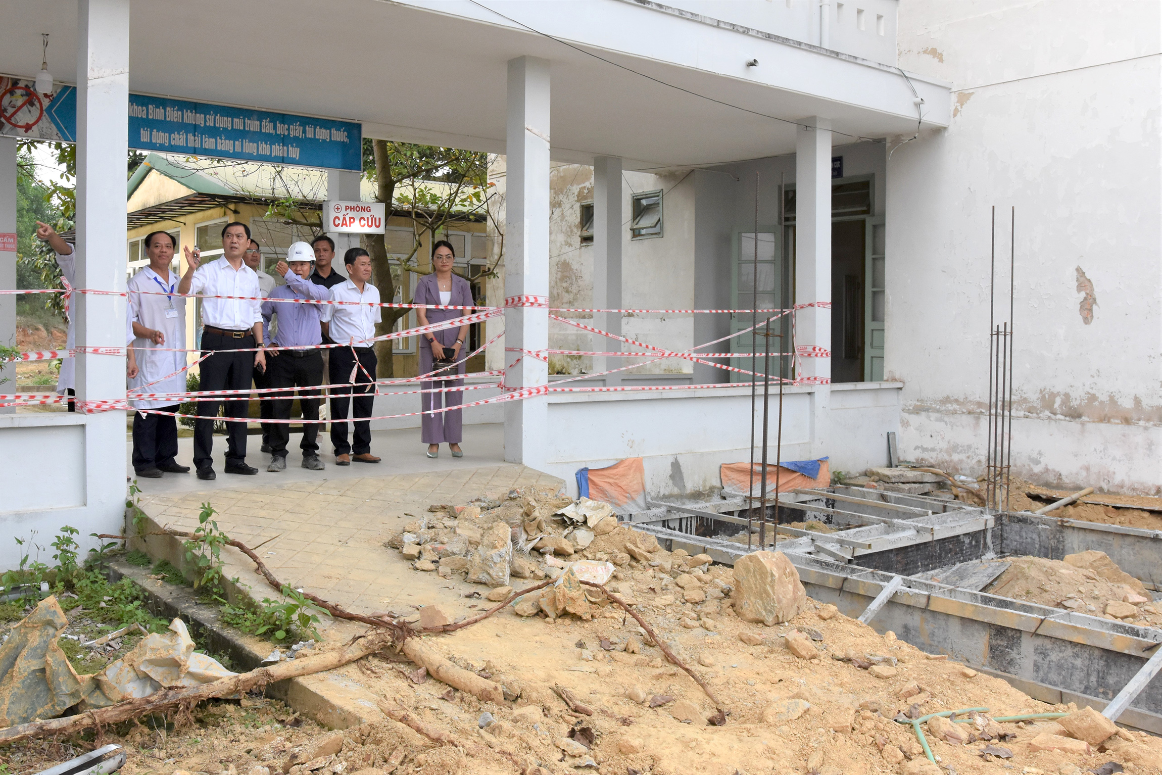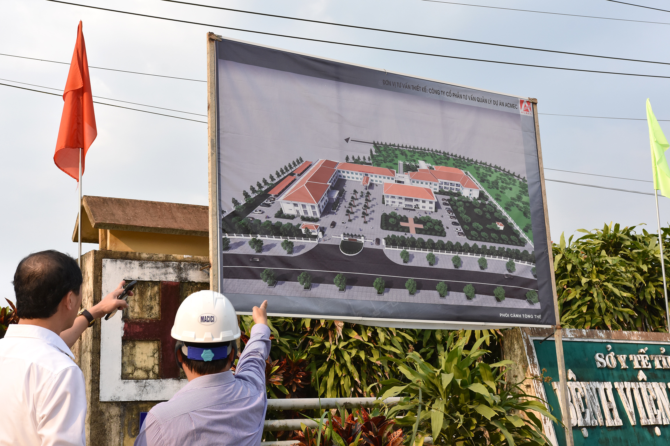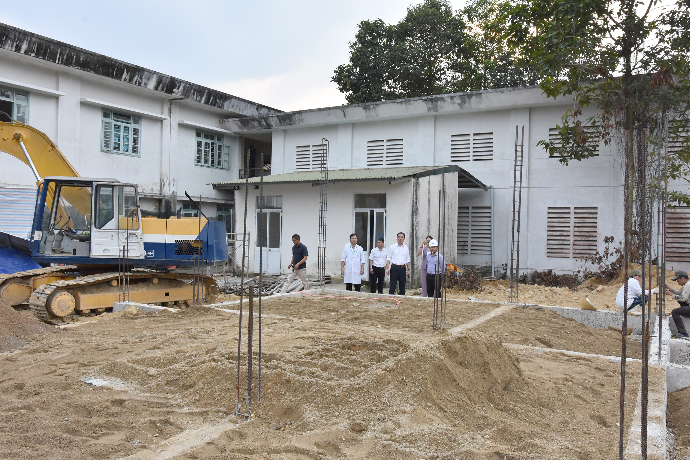 Sau buổi gặp mặt, Giám đốc Trần Kiêm Hảo cùng đoàn đã đi thăm “Dự án đầu tư xây mới, nâng cấp, cải tạo và mua sắm trang thiết bị cho BVĐK Bình Điền và Bệnh viện TTYT huyện Quảng Điền”. Dự án được khởi công ngày 02/01/2024 với tổng giá trị 75 tỷ đồng, trong đó vốn đầu tư của tỉnh là 25 tỷ đồng, theo kế hoạch công trình sẽ hoàn thành sau 240 ngày kể từ ngày khởi công. Qua trò chuyện, trao đổi Giám đốc Trần Kiêm Hảo yêu cầu nhà thầu bảo đảm chất lượng và tiến độ công trình. Trong quá trình thi công nghiêm túc thực hiện và có giải pháp đảm bảo an toàn để không xảy ra tai nạn lao động và giải pháp vệ sinh lao động nhằm giúp người lao động không bị các bệnh liên quan đến ngành nghề đang làm....