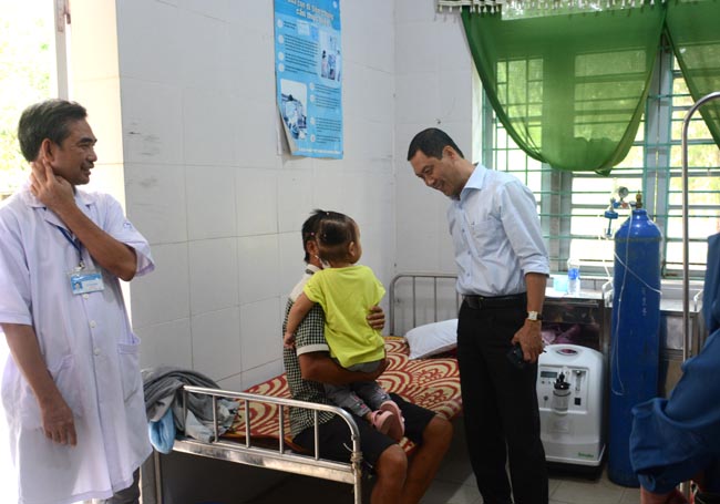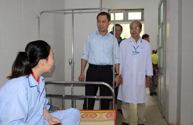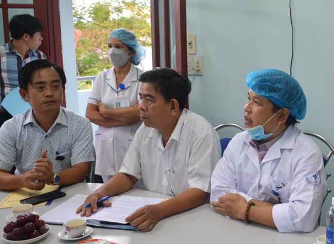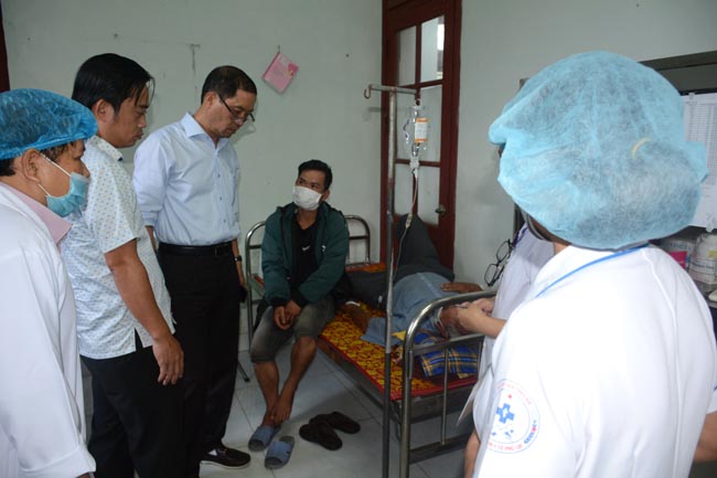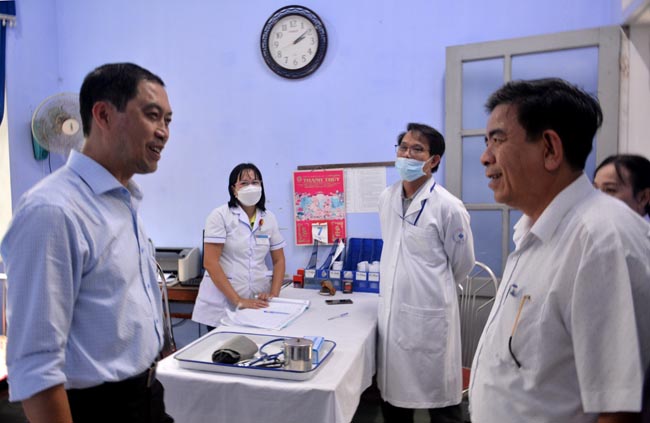 Giám đốc sở Y tế, ông Trần Văn Minh Quân - Phó Chủ tịch UBND huyện Phú Lộc (mặc áo chấm) thăm hỏi bệnh nhân tại 2 Phòng khám.