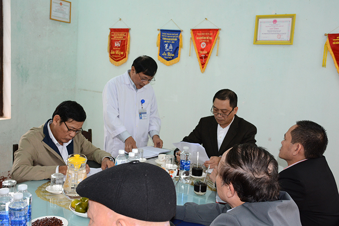 BS Hồ Văn Thứ - Trưởng PKĐK Khu vực II và BSCKII Trần Quốc Hùng Giám đốc TTYT thành phố Huế báo cáo hoạt động phòng khám.