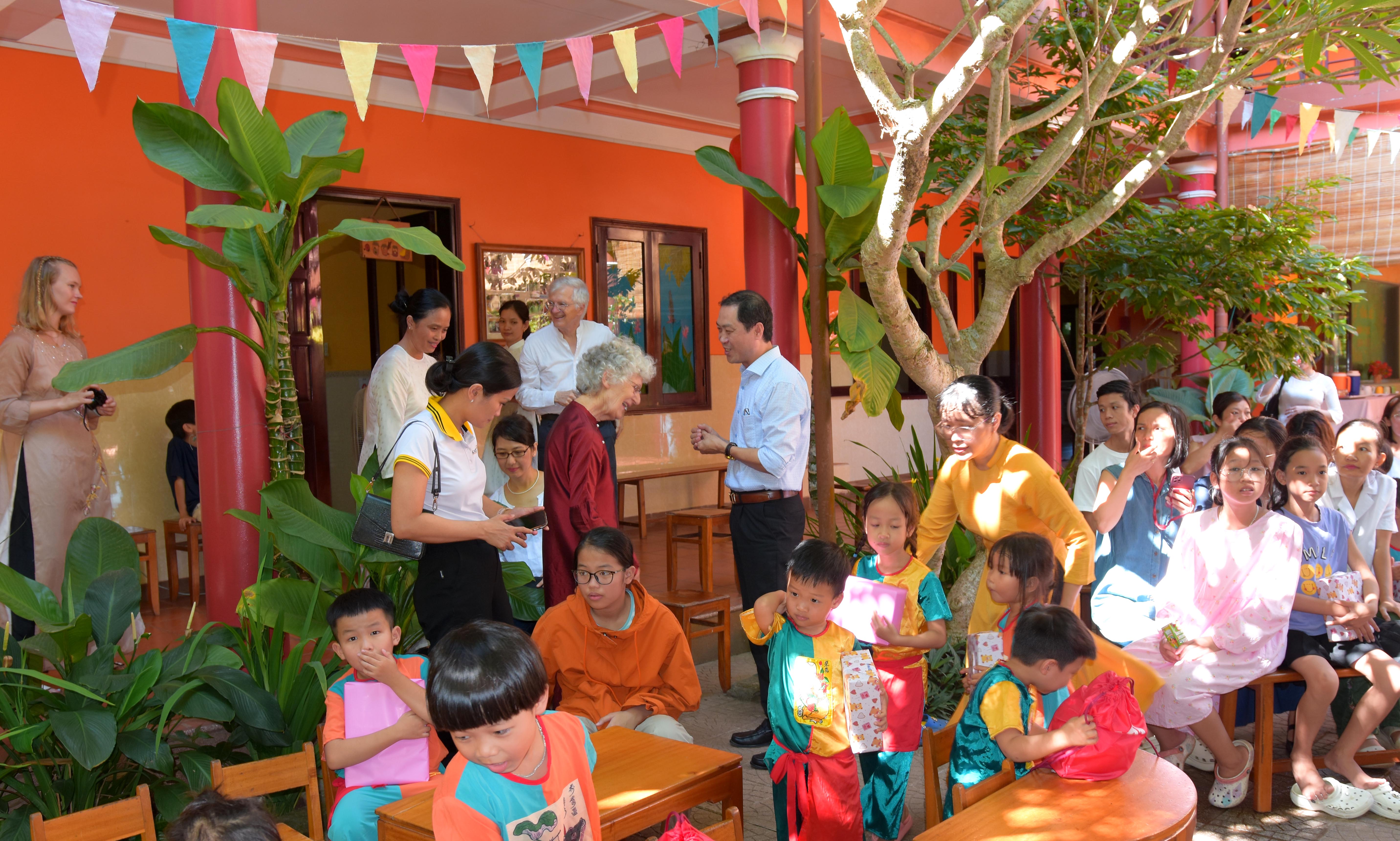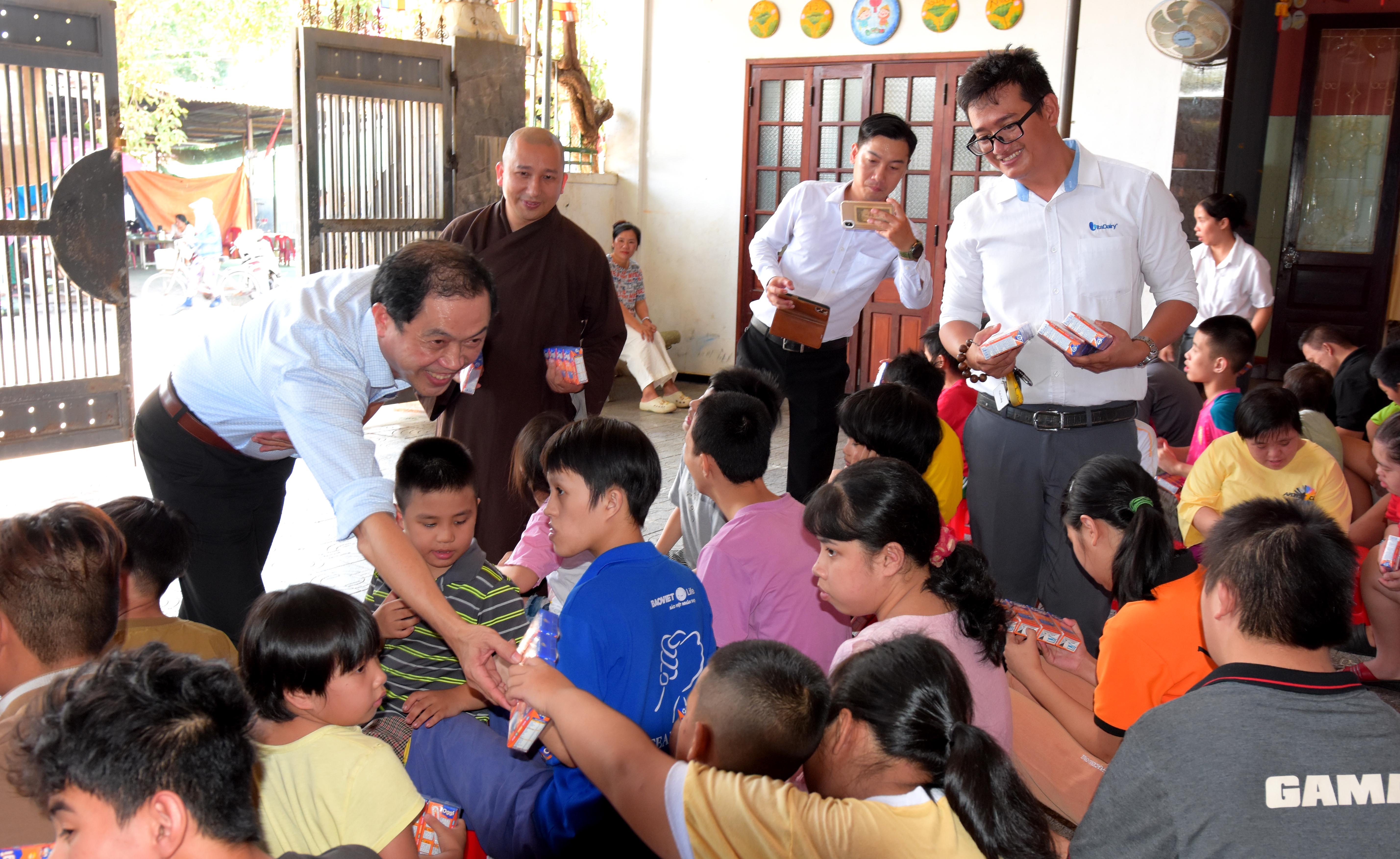Đoàn thăm Trung tâm Bảo trợ trẻ em khuyết tật Chùa Long Thọ, phường Thủy Biều - Tp Huế.