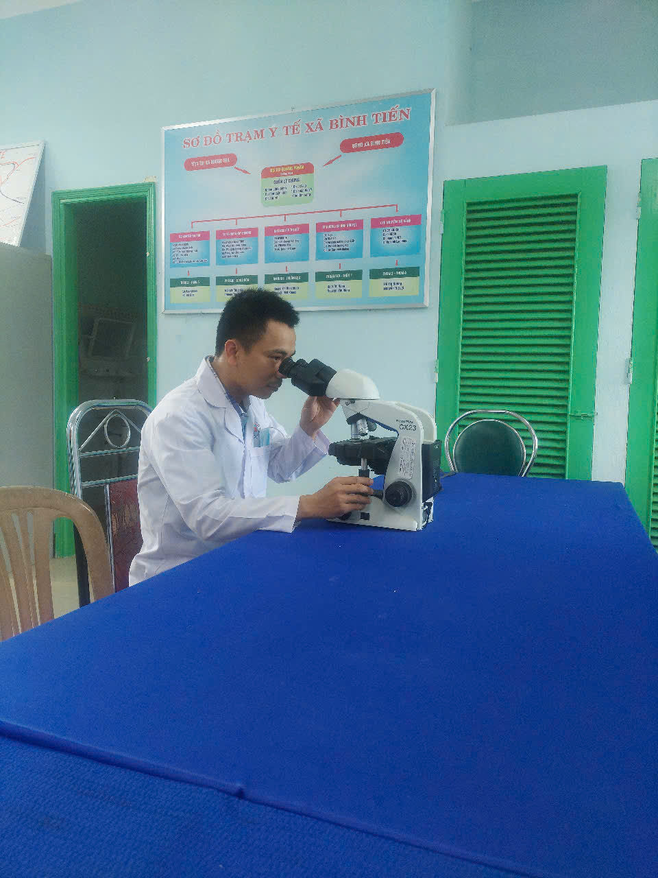 Cán bộ phụ trách điểm kính soi bộ lam mẫu KSTSR