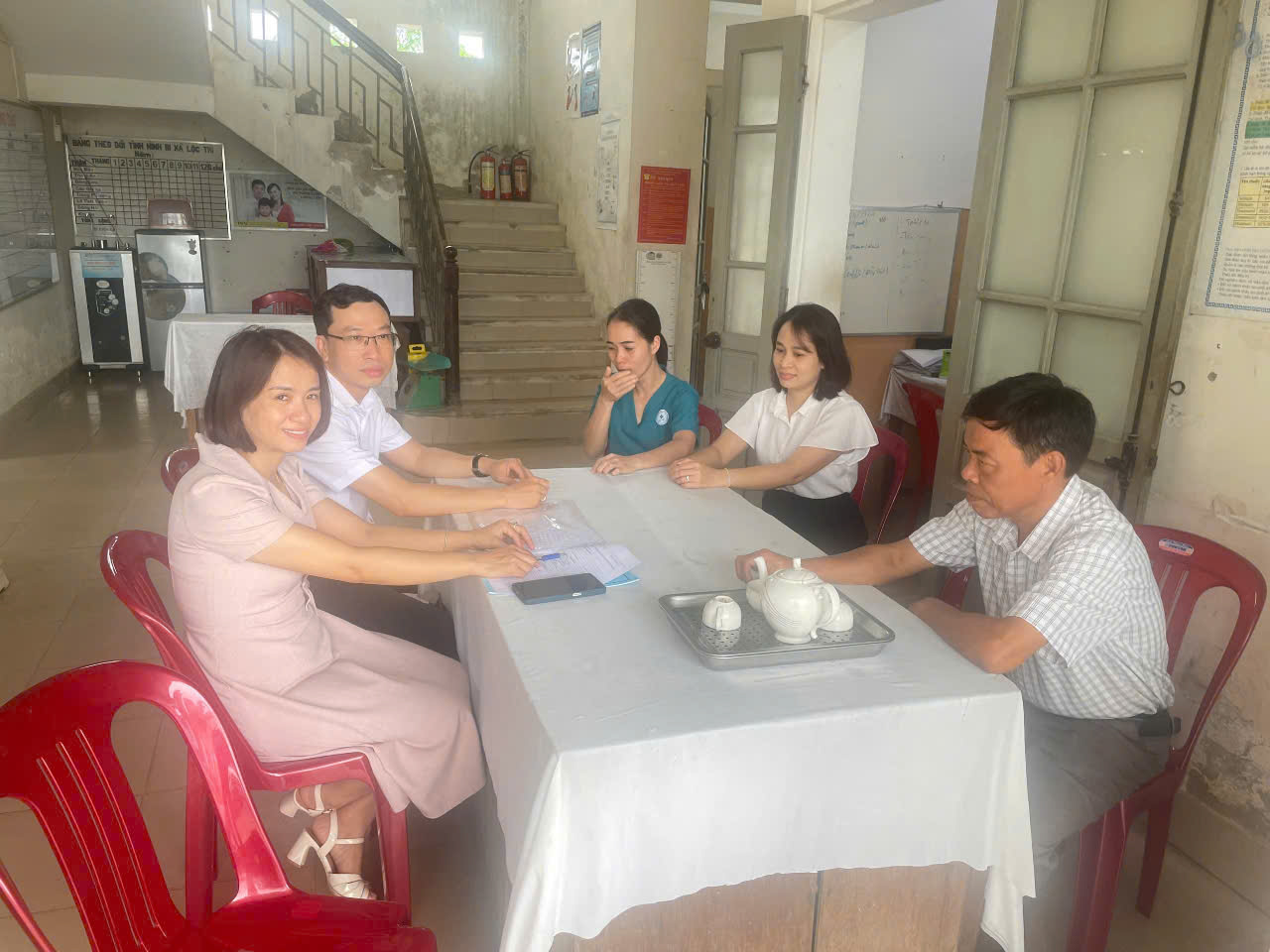 Cán bộ khoa XN-CĐHA-TDCN làm việc tại xã Bình Tiến