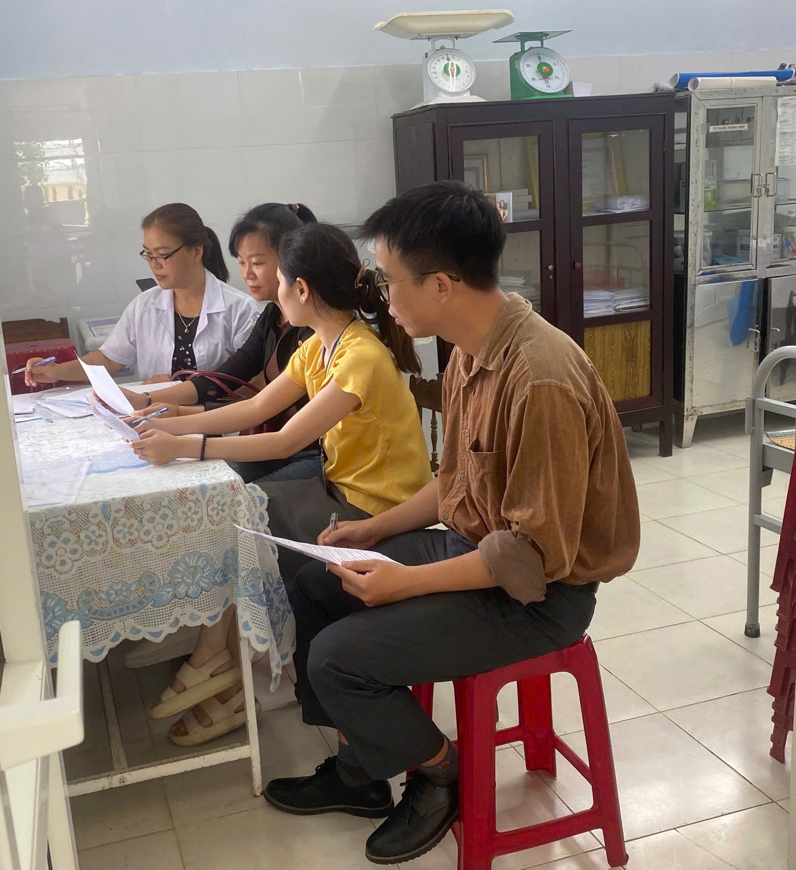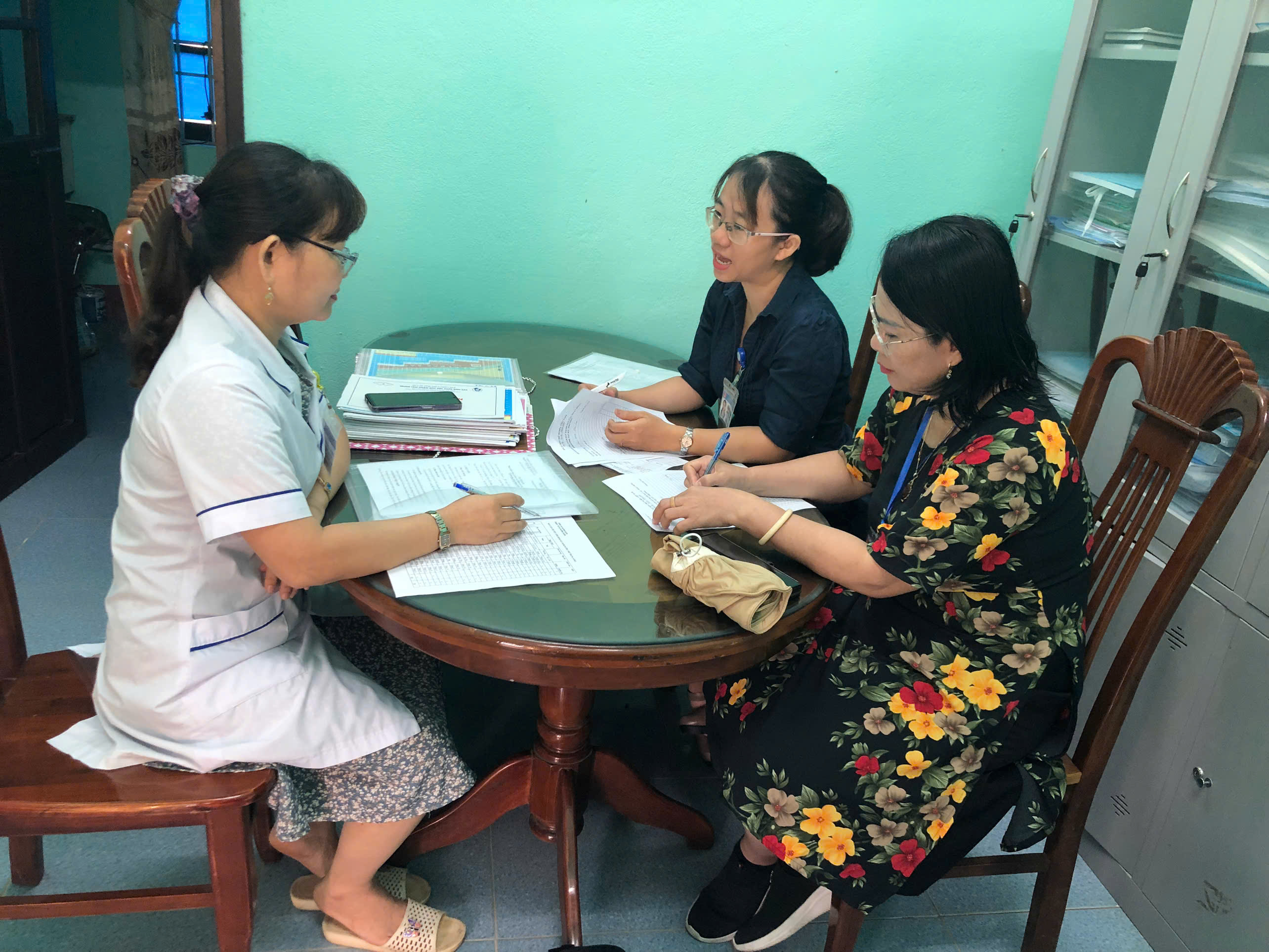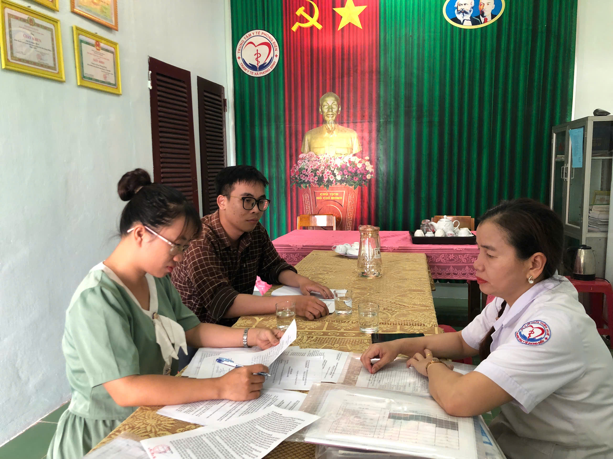 Phối hợp cùng chuyên trách TTYT Phú Xuân giám sát hỗ trợ tại TYT Kim Long