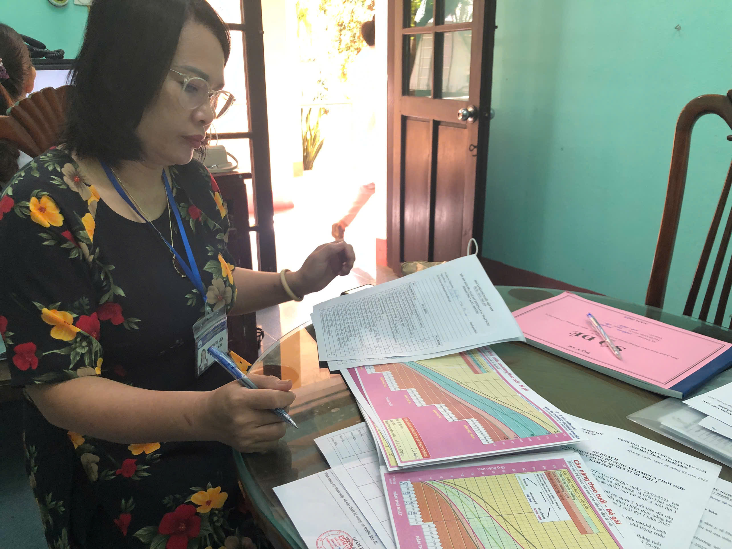 Đoàn kiểm tra kỹ thuật chấm biểu đồ tăng trưởng của trẻ dưới 5 tuổi