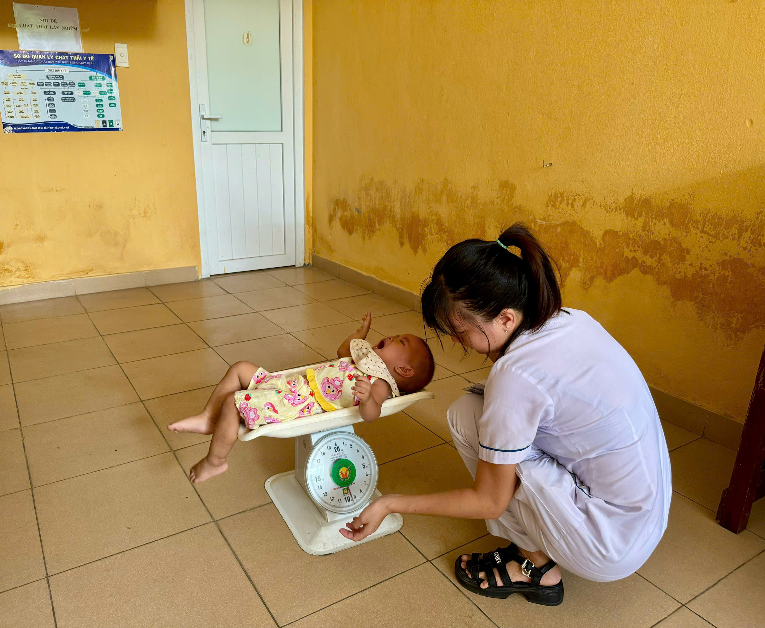 Đo chiều dài nằm cho trẻ dưới 2 tuổi tại TYT phường Vỹ Dạ