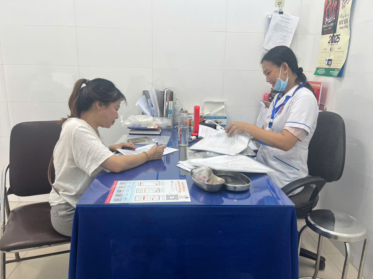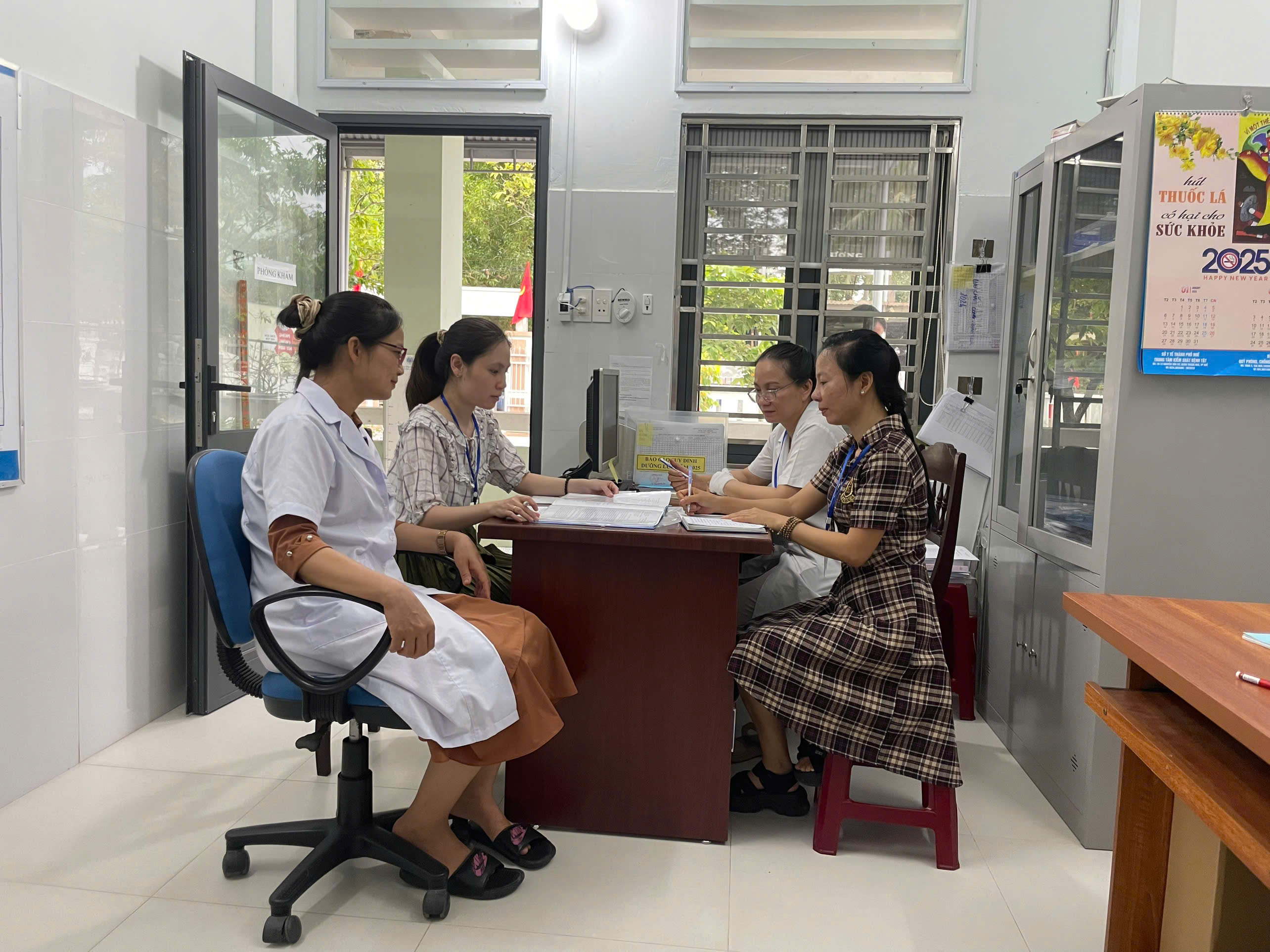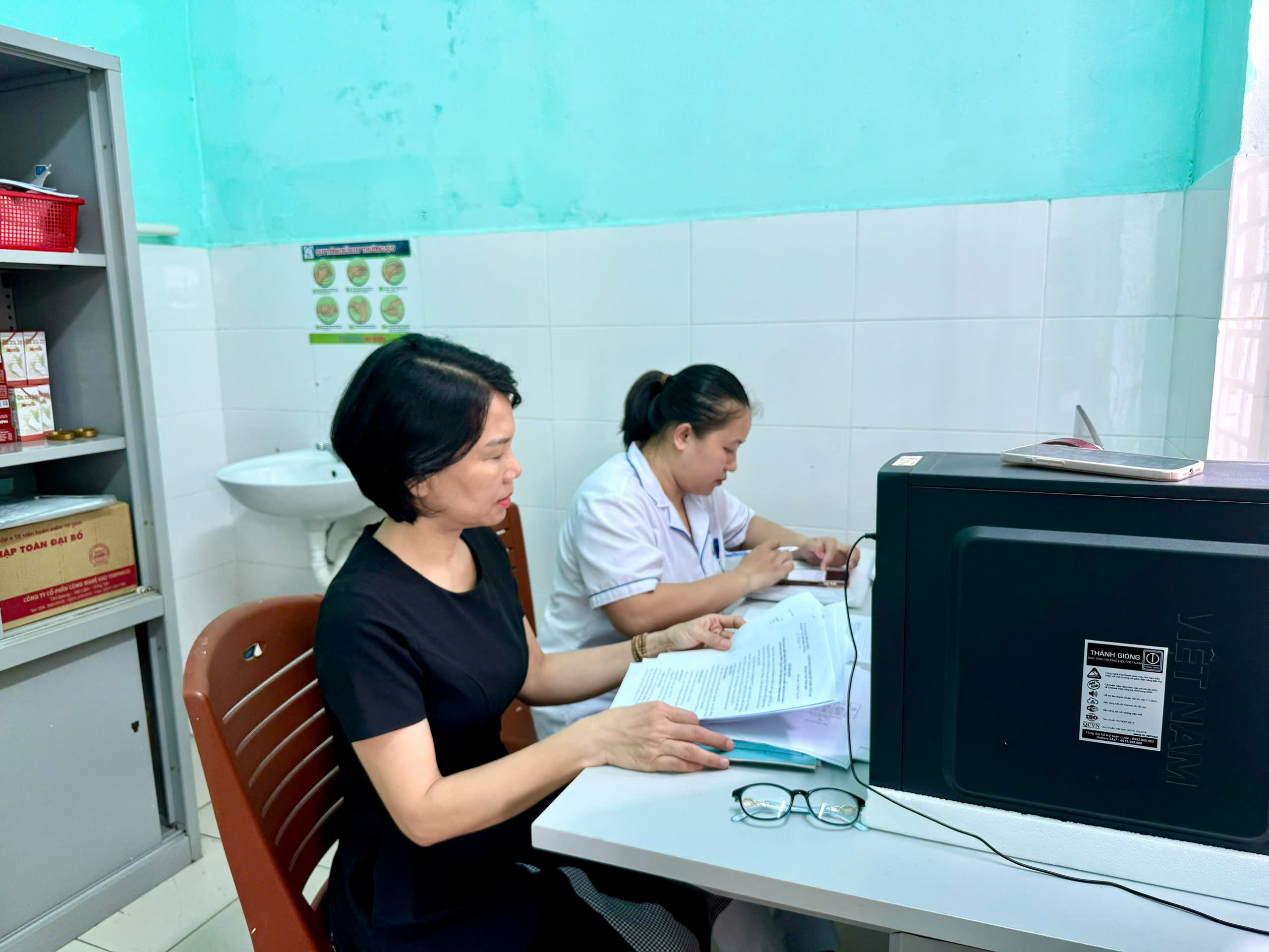 Cán bộ khoa PCBKLN-DD kết hợp với chuyên trách dinh dưỡng TTYT Hương Thuỷ giám sát tại TYT phường Hương Thuỷ