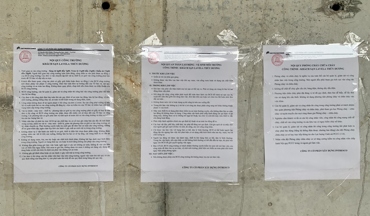 Nội quy Công trường - Khách sạn La Vela Thủy Dương