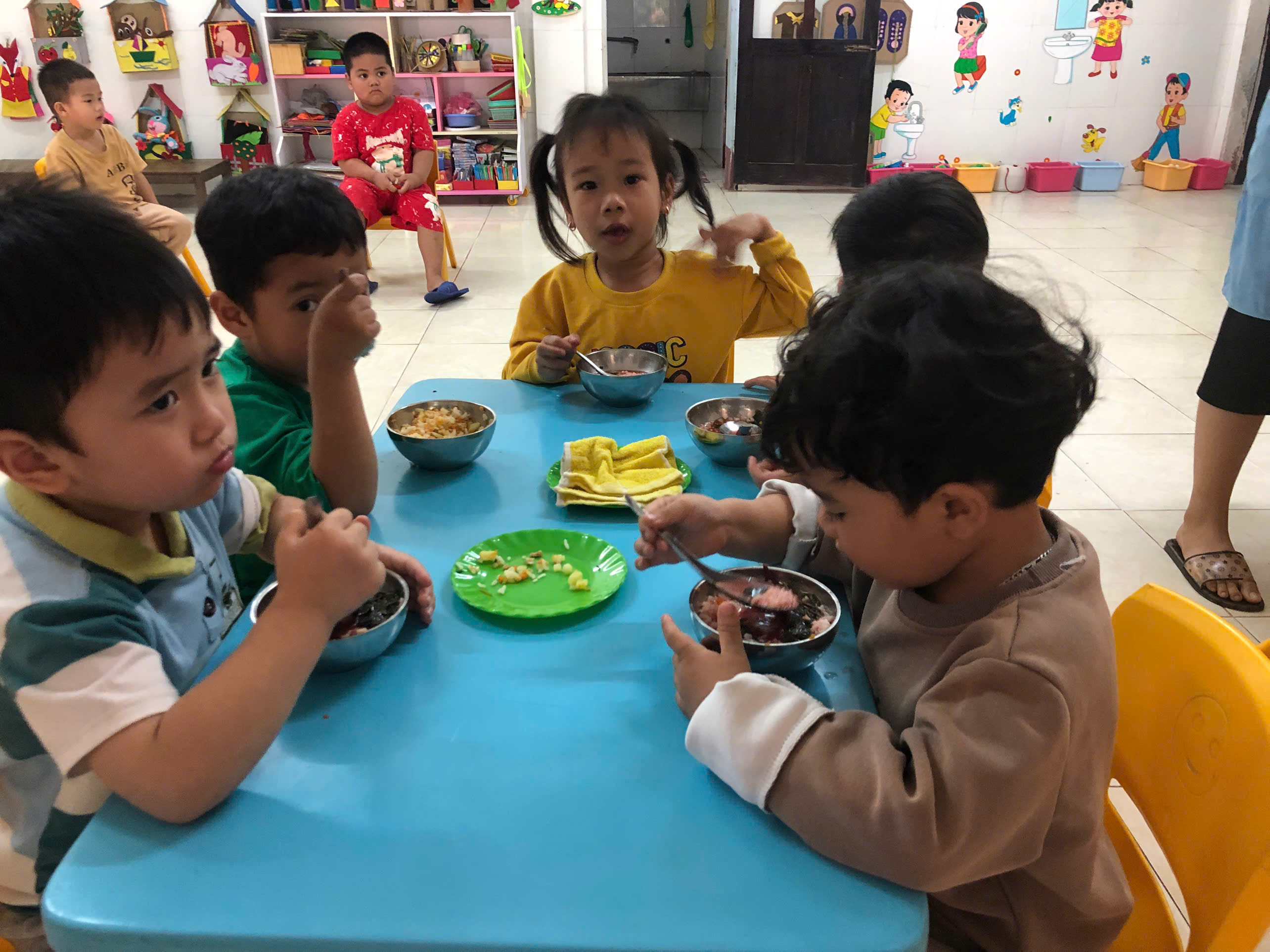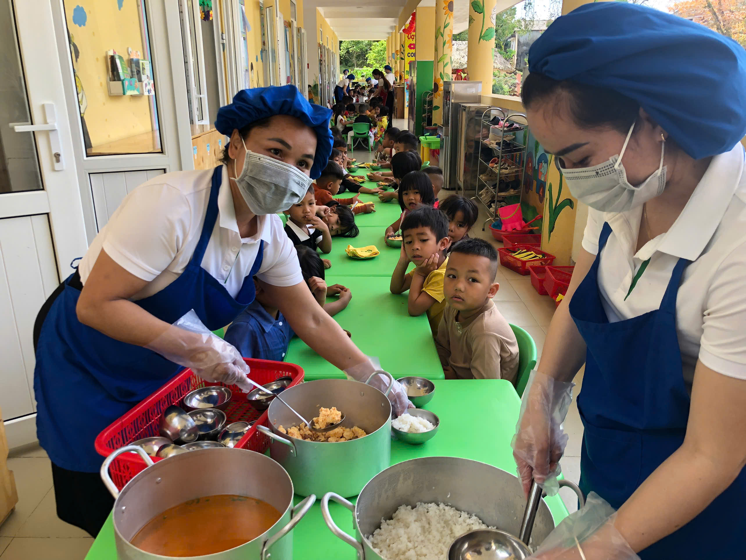 Trẻ thưởng thức bữa ăn tại trường