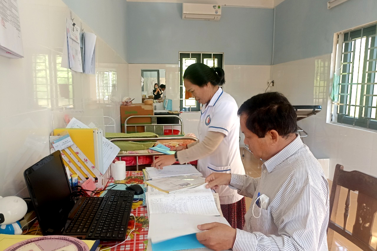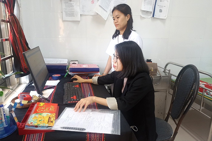 Cán bộ CDC tỉnh kiểm tra báo cáo trên phần mềm tại TYT xã Hồng Hạ, huyện A Lưới