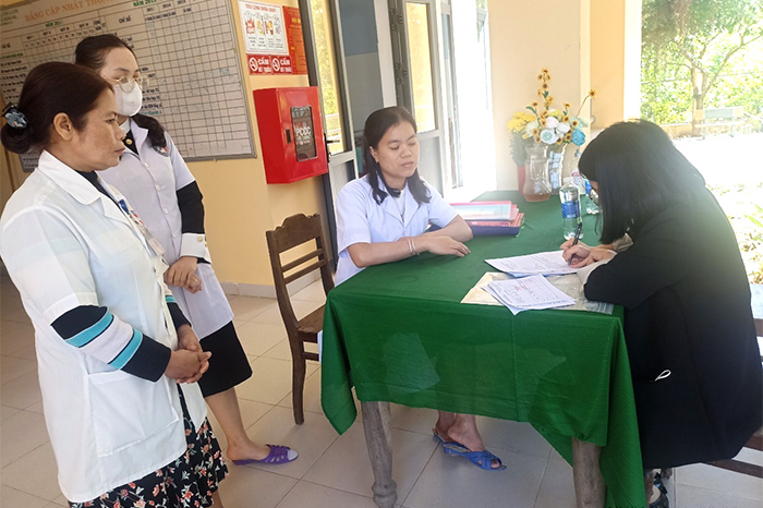 Cán bộ CDC tỉnh kiểm tra sổ sách, báo cáo tại TYT xã Hồng Hạ, huyện A Lưới