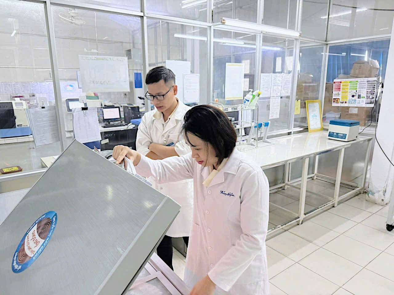 Khoa XN – TTYT Thành phố công tác lấy mẫu, bảo quản và vận chuyển mẫu bệnh phẩm đến PXN TTKSBT tỉnh được thực hiện đúng quy trình và đầy đủ. Có sổ quản lý và vận chuyển mẫu bệnh phẩm và ghi chép đầy đủ.