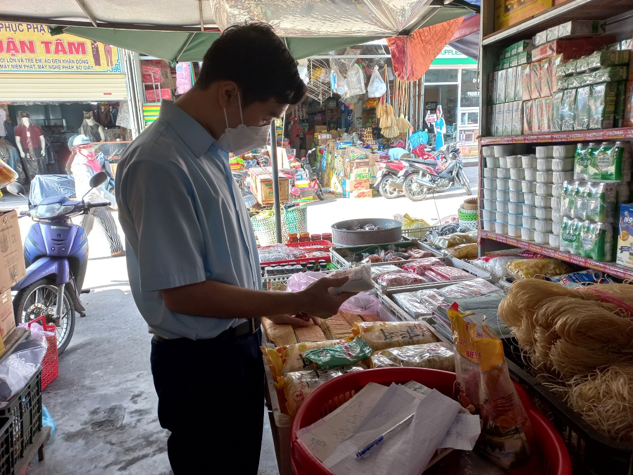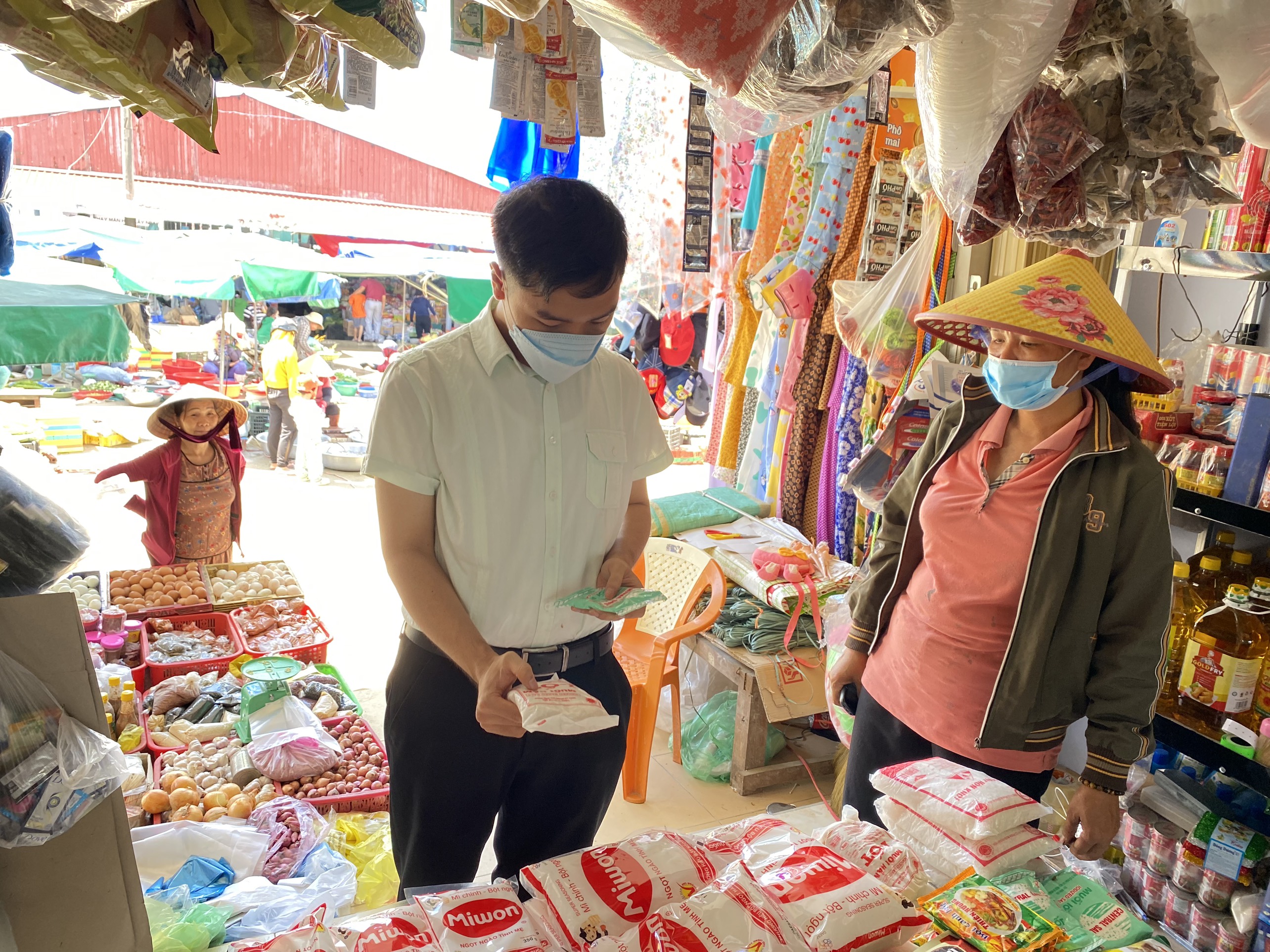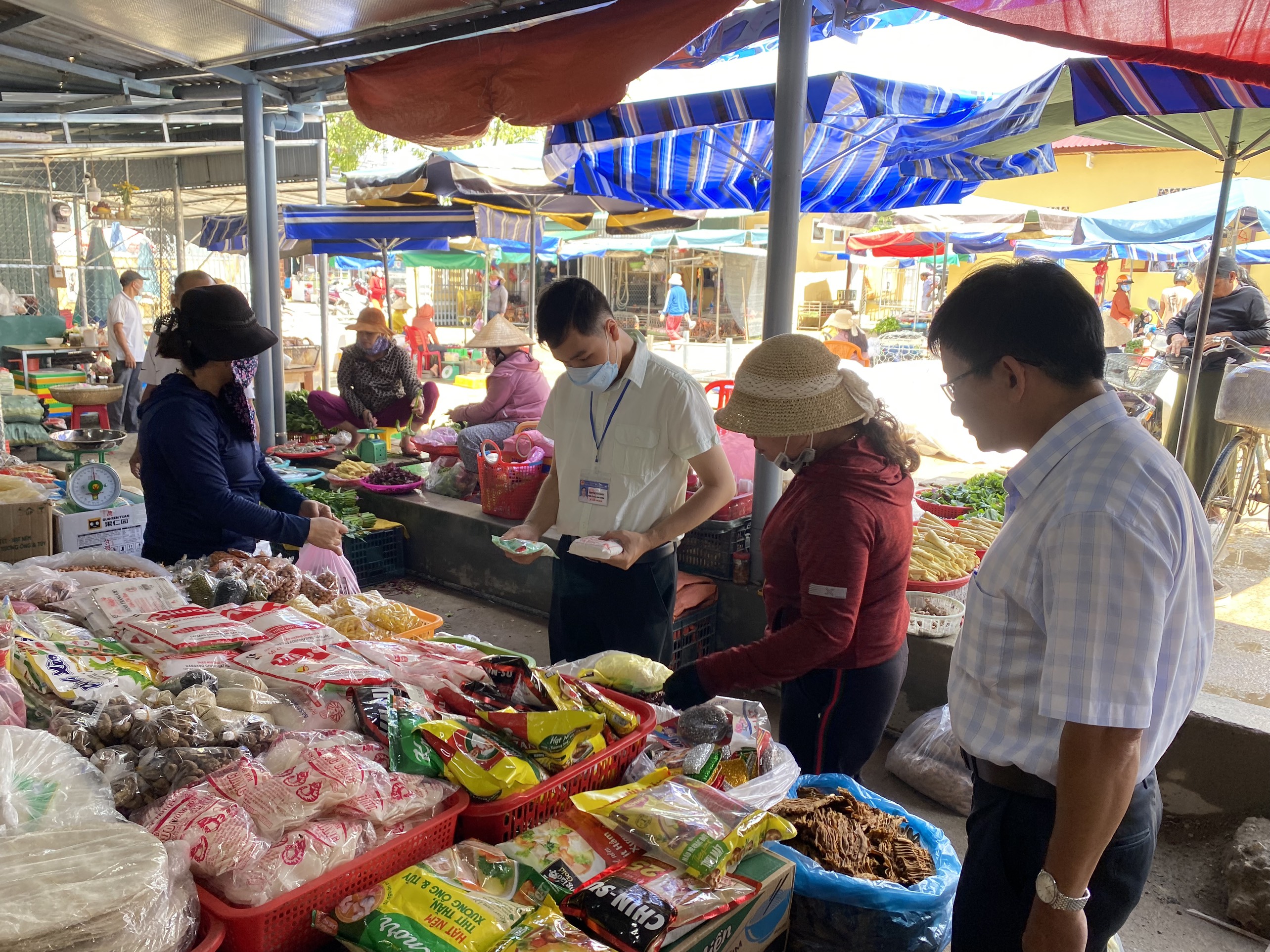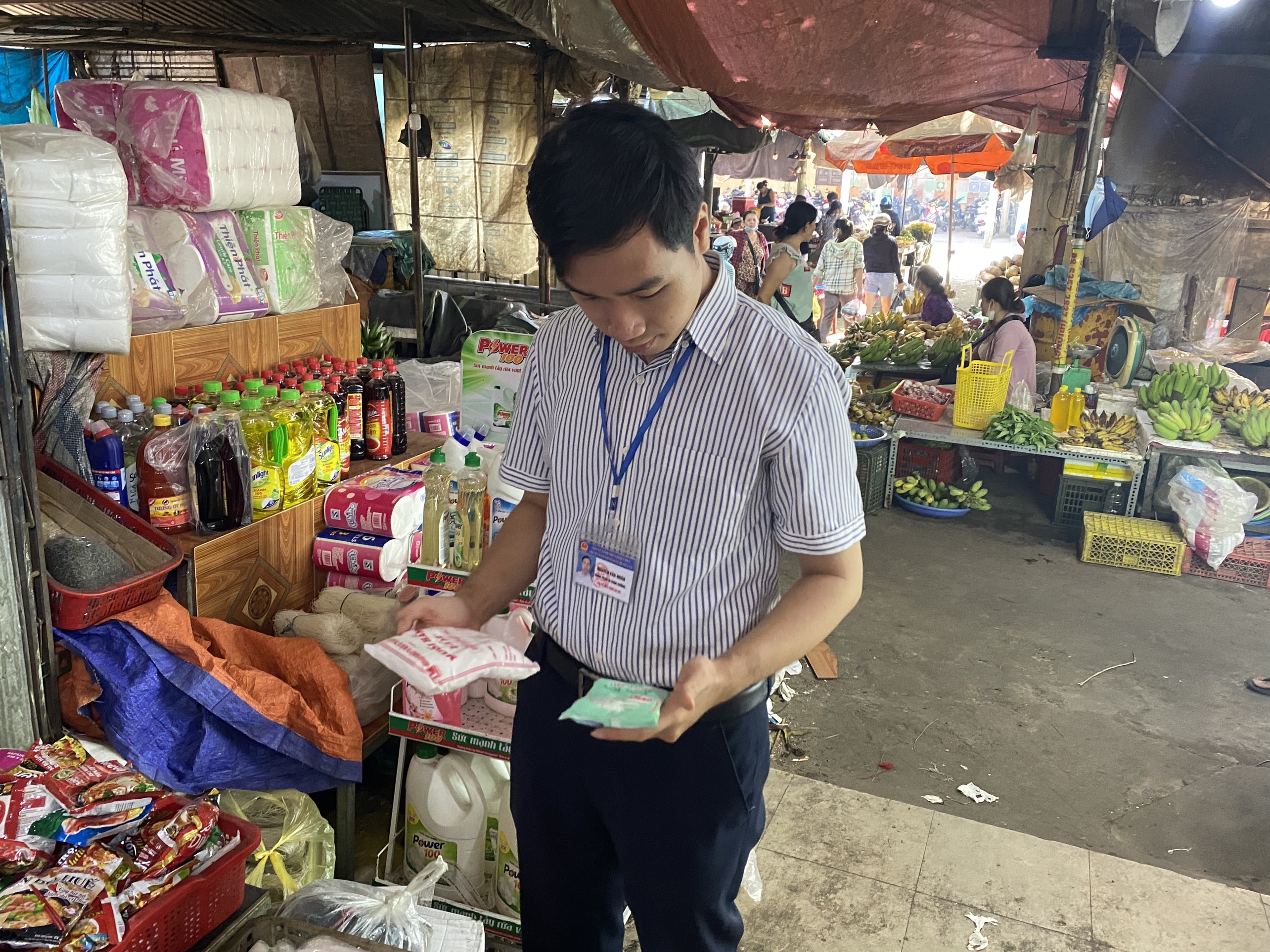 Cán bộ khoa PCBKLN-DD lấy mẫu muối tại chợ, cửa hàng kinh doanh