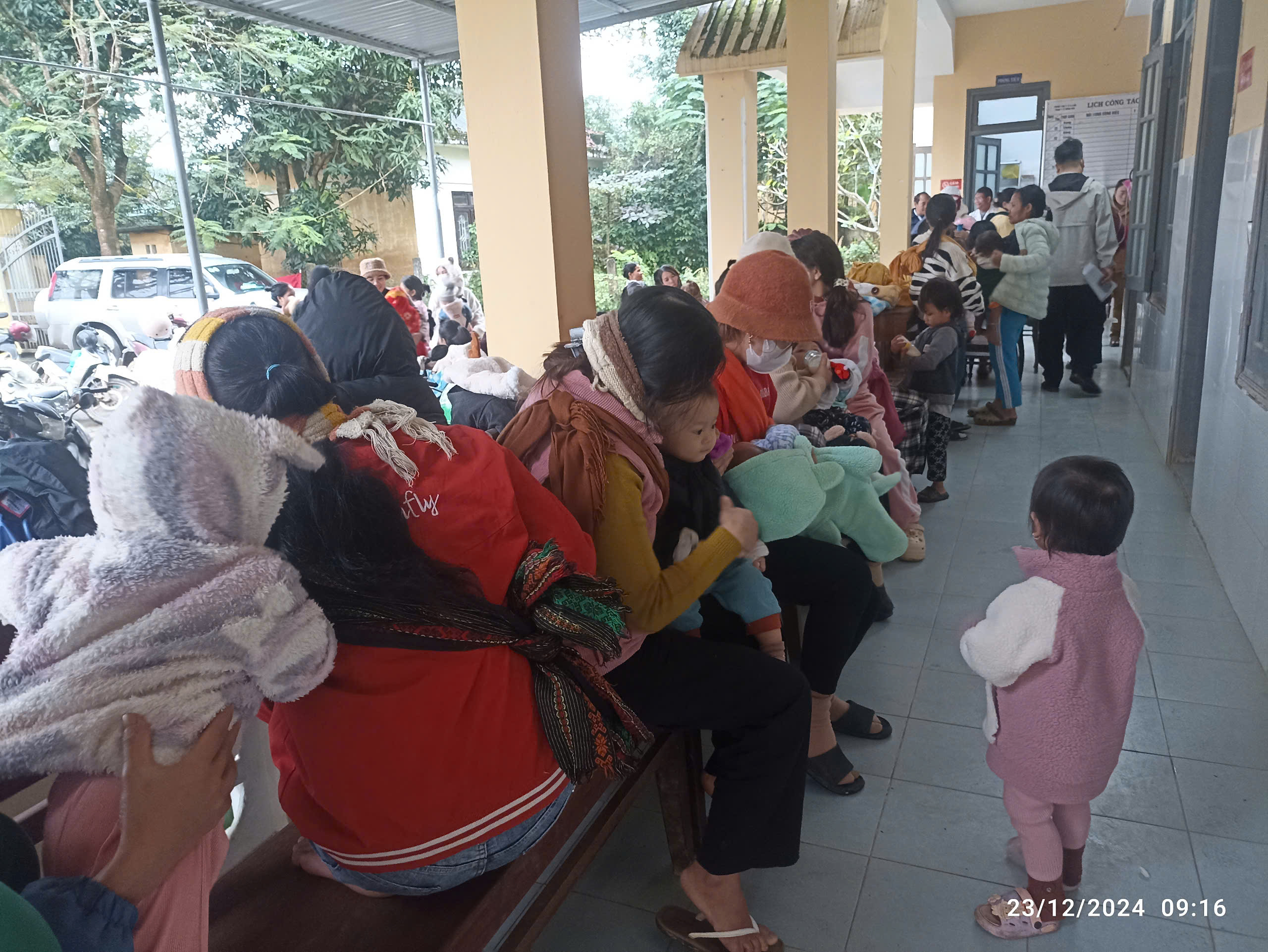 Các bà mẹ đưa con đến đăng ký tiêm chủng tại trạm Y tế xã Hồng bắc, huyện A Lưới.